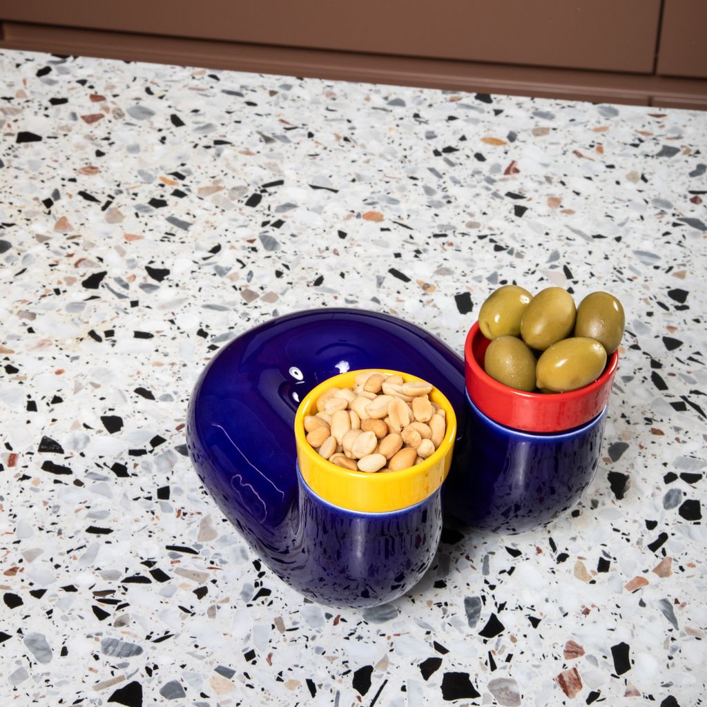 Glazed ceramic jar available in 3 colors, perfect for a variety of uses, such as: emptying pockets, object holder, jar for a small plant or as an appetizer container. It is compatible with U and Holder.