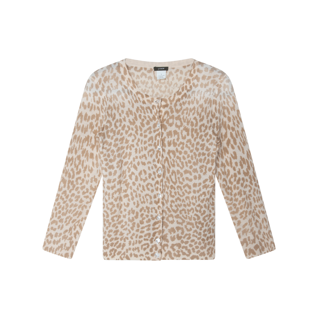 J.Crew Cheetah Print Cardigan features front button closure and cheetah print.