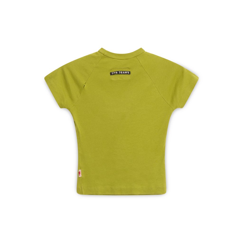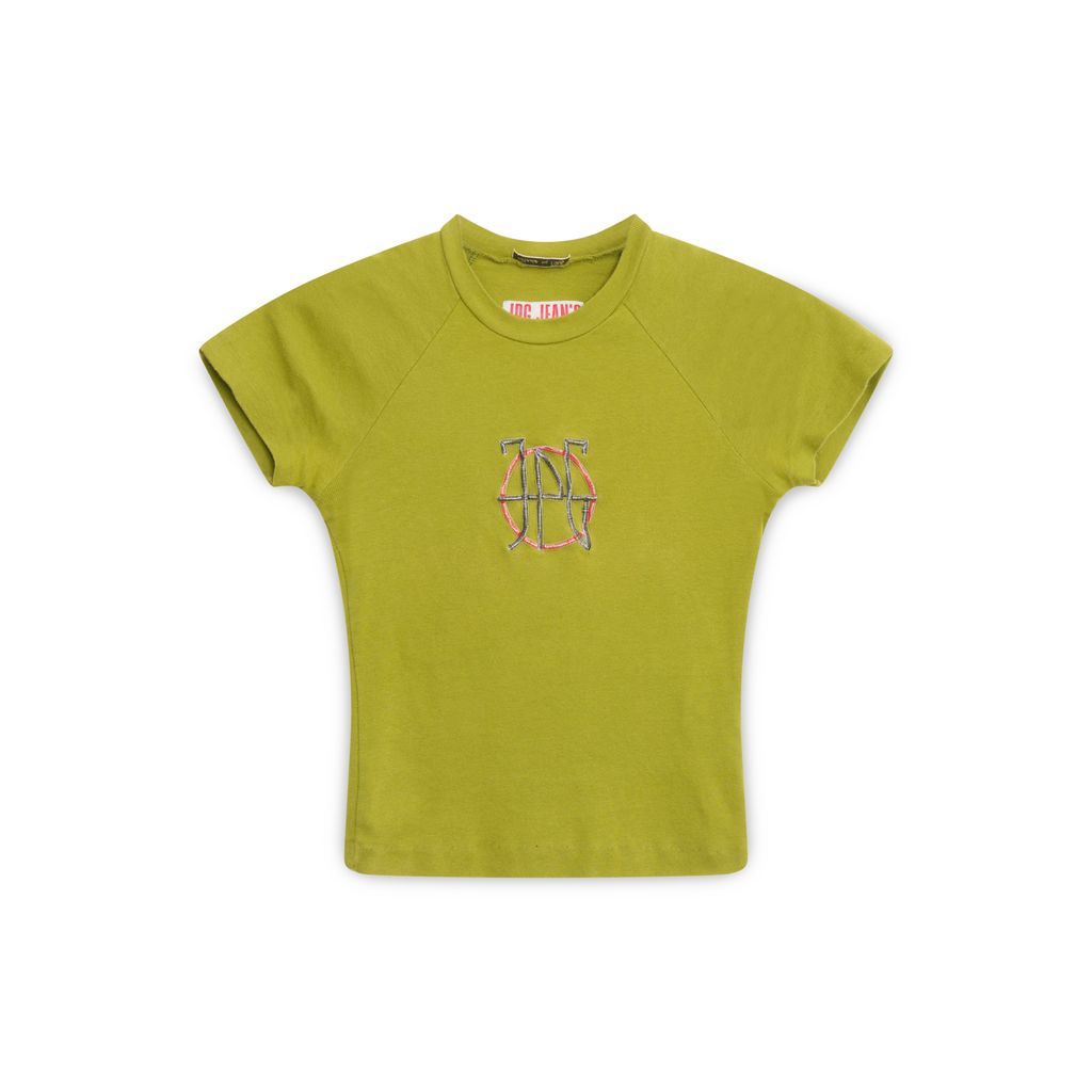 Jean Paul Gautier Jeans Tee features embroidered logo on chest, logo tag on side and back, small hole on back left shoulder.
