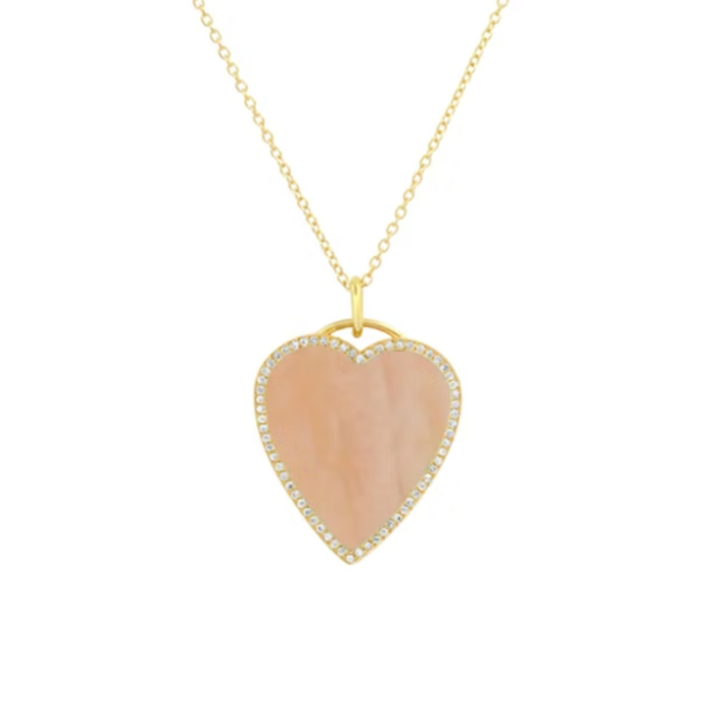 Love at first sight! This Jennifer Meyer Pink Opal Inlay Heart Necklace is set in 18k yellow gold and surrounded by shimmering pavé diamonds. Necklace is 18" length with spring clasp , pendant measures 0.91" x 0.75". Thought to bring a sense of love , peace and hope , each natural stone is one-of-a-kind and may vary slightly from piece to piece. A symbol of love , it's the perfect gift for yourself or someone special.