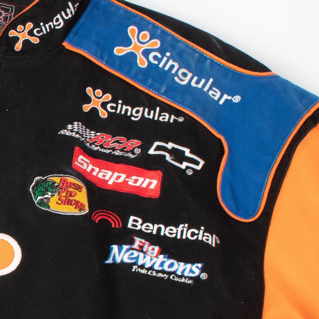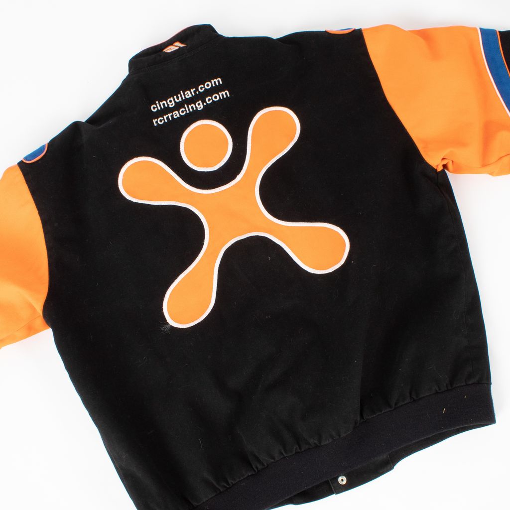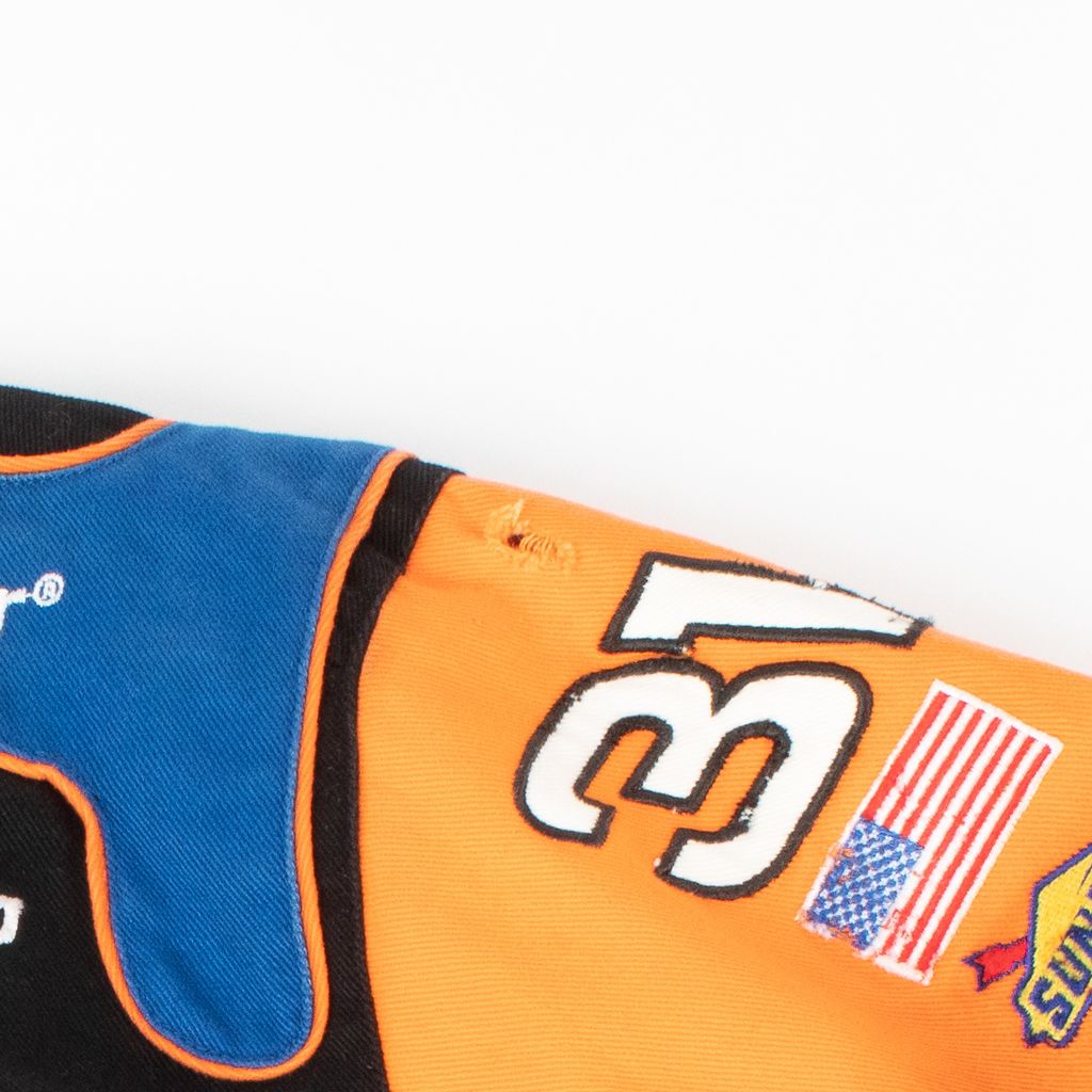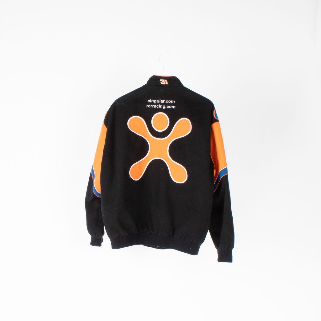 Rev up your engines and get ready to roll in this sick racing jacket from JH Design. Features snap button front, all over embroidery from corporate sponsors, slanted front pockets, and minor signs of wear. Signs of wear include color fading, and signs of distressing throughout.