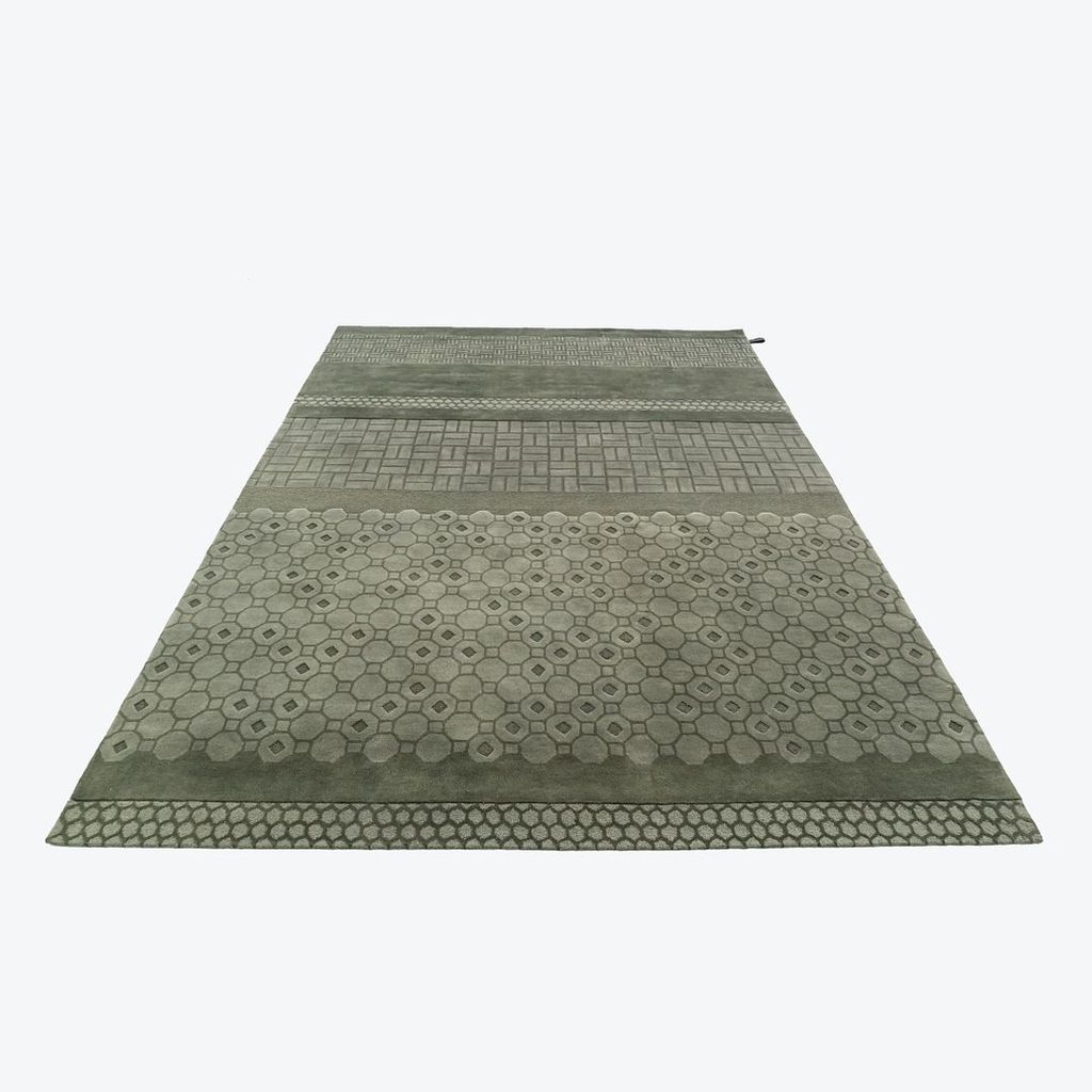 Listed for sale is a Jie Rug hand tufted with wool in a celadon shade of green. The rug was designed by Neri and Hu and produced by Nanimarquina in India. It dates to circa 2022 and is guaranteed as authentic. Condition is very good to excellent. See photos. This came directly from Nanimarquina and was previously a showroom display model.