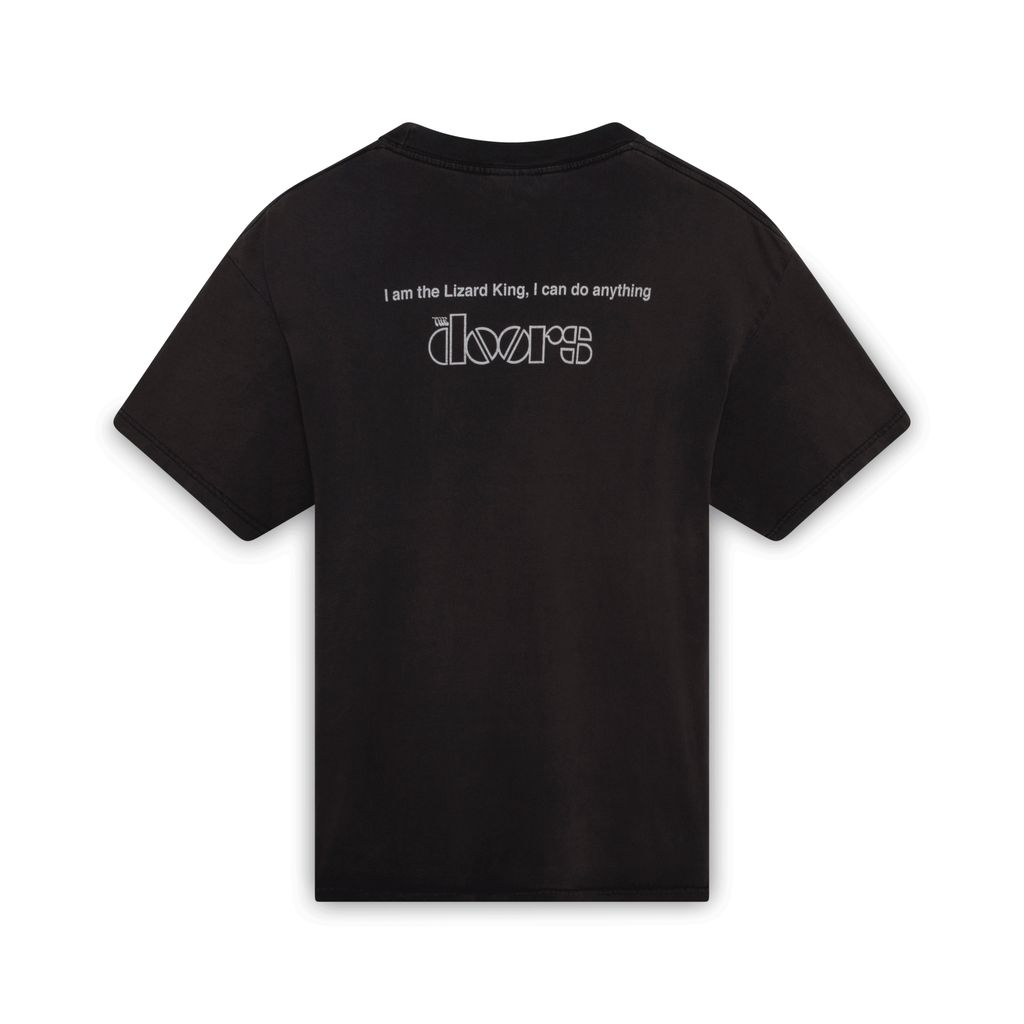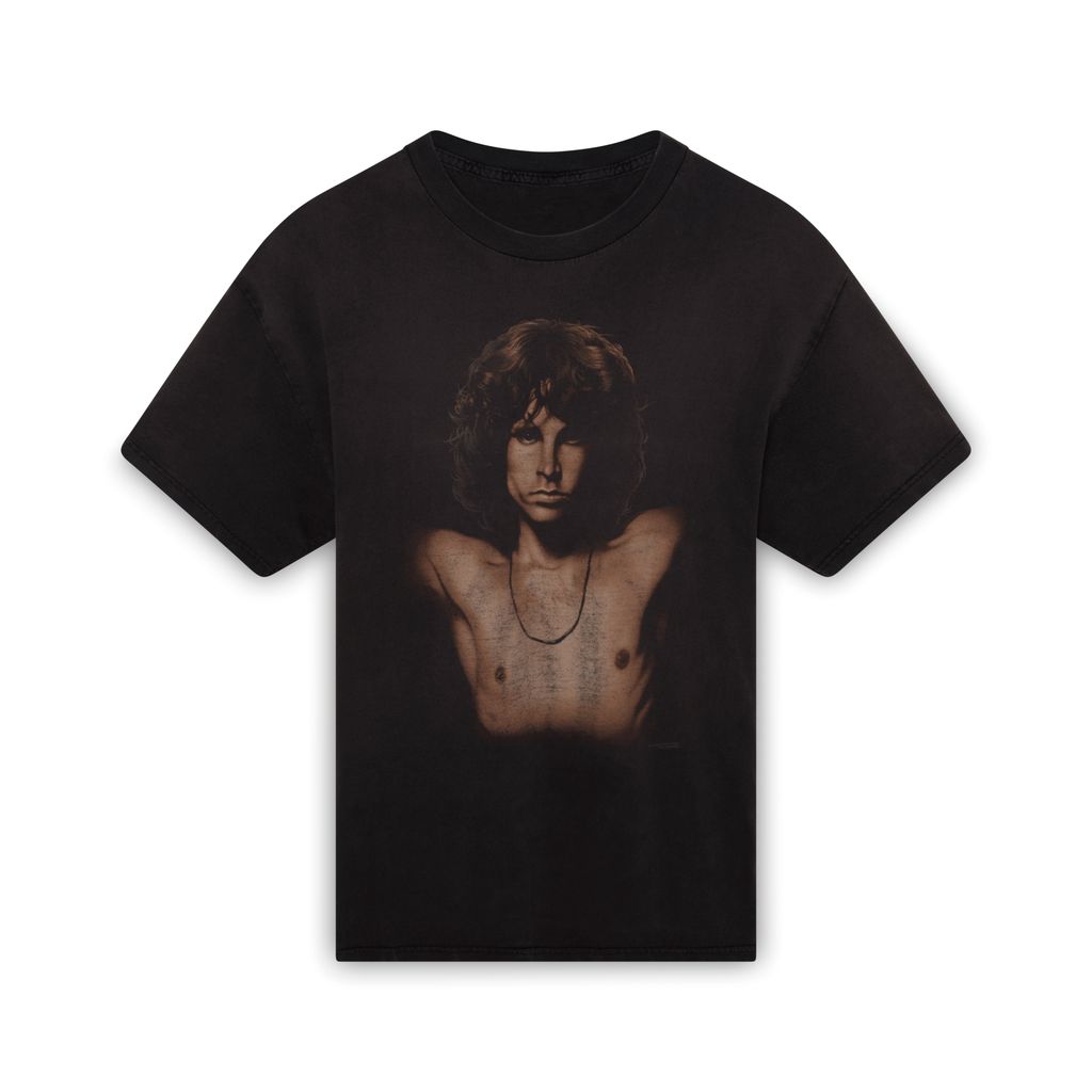 Jim Morrison Tee features shirtless Jim Morrison graphic and text on the backside.