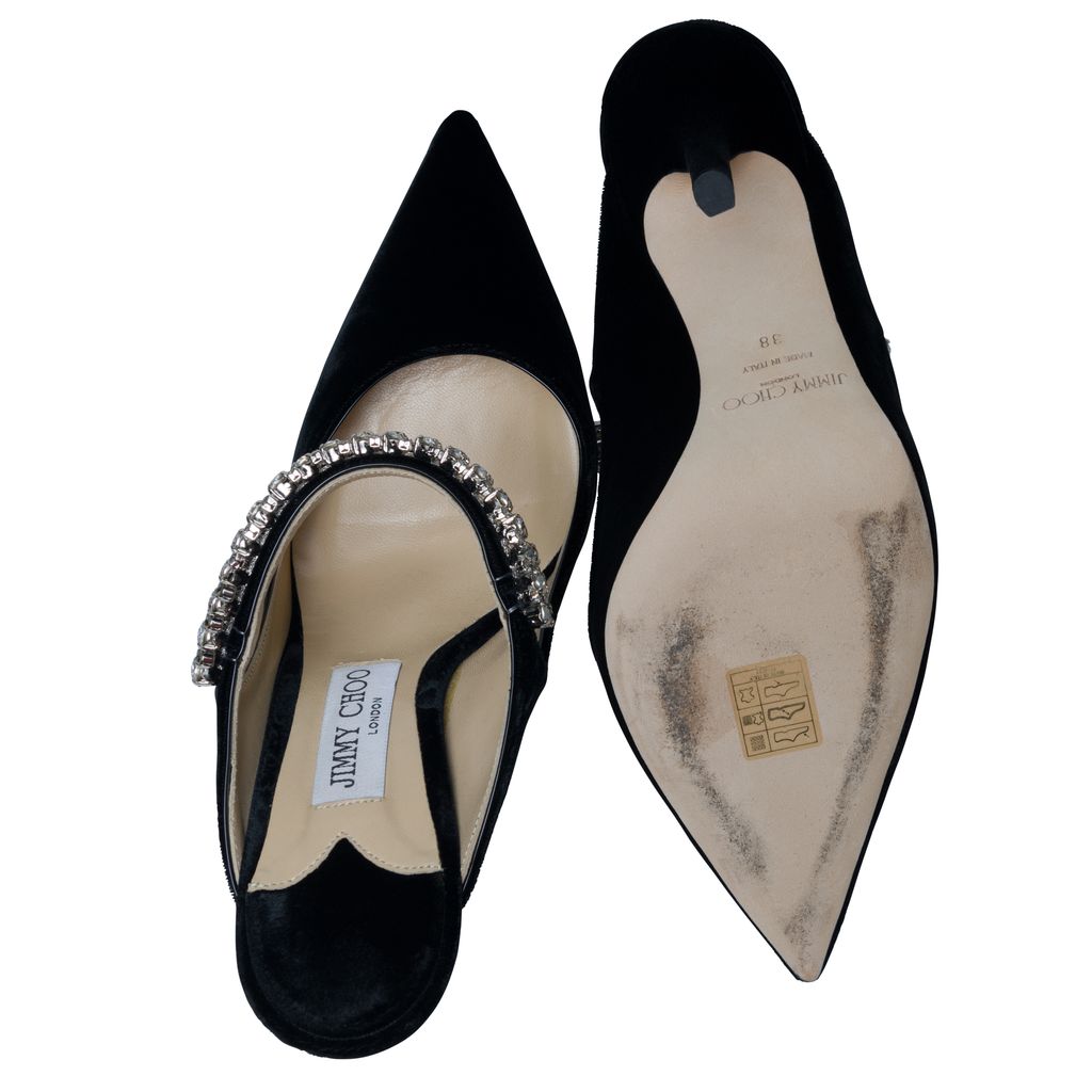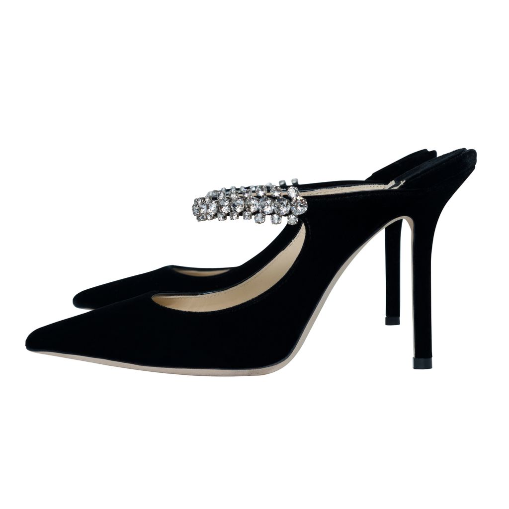 Features a sparkling crystal-encrusted strap across the top of the foot for a hint of glamour. Slip on and make a statement.