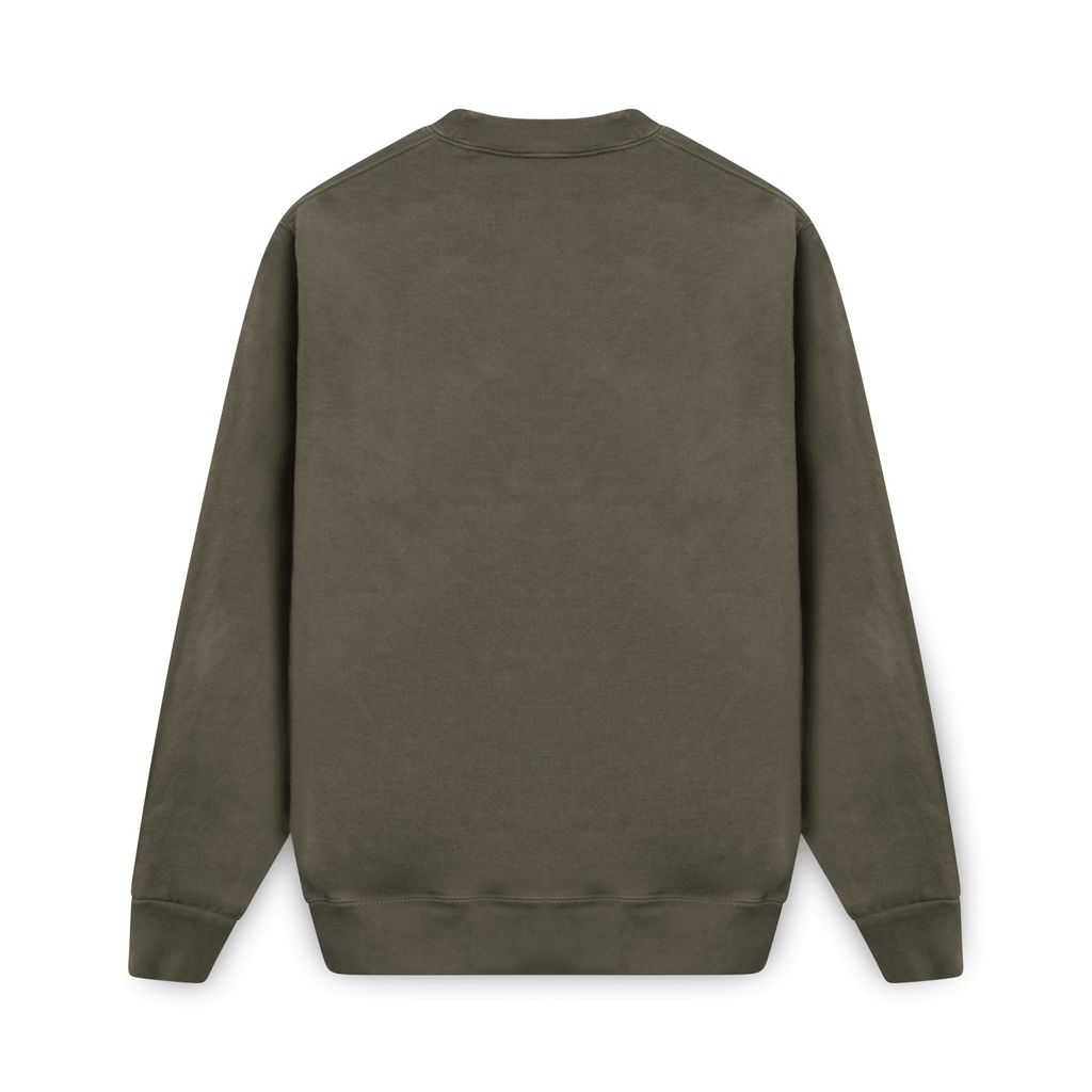 JJJJound J/95 Crewneck in Utility Green features the JJJJound logo embroidered on the left chest.