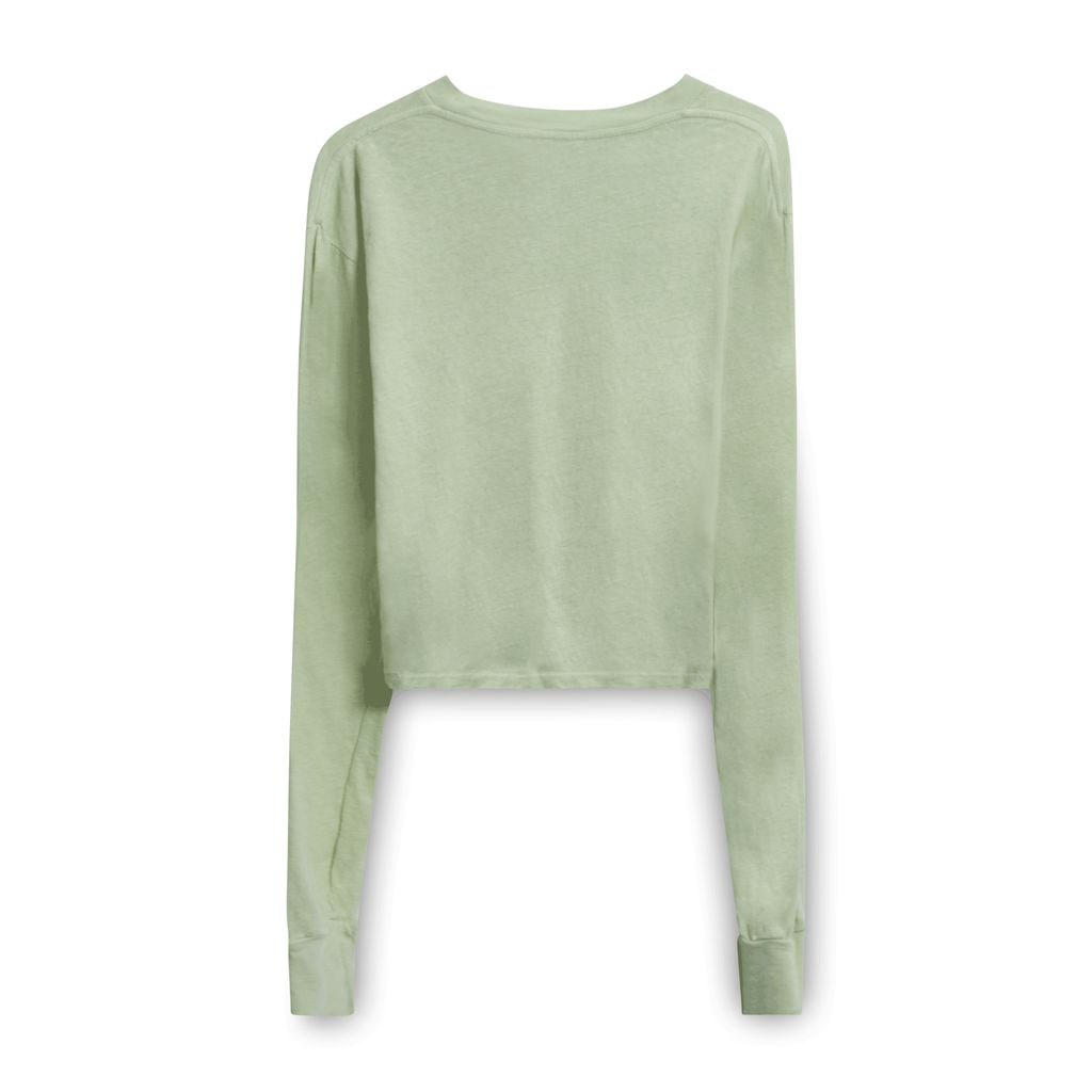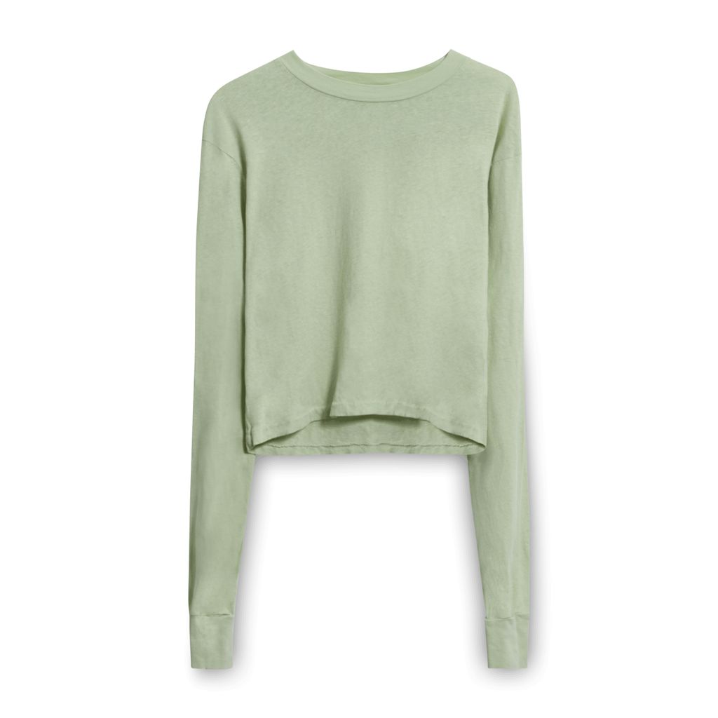 This long sleeved cropped tee from John Elliot is crafted from soft recycled cotton jersey and is accented with rib knit crewneck collar and cuffs. Made in Los Angeles. New with tags.