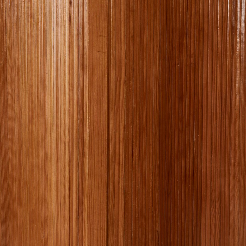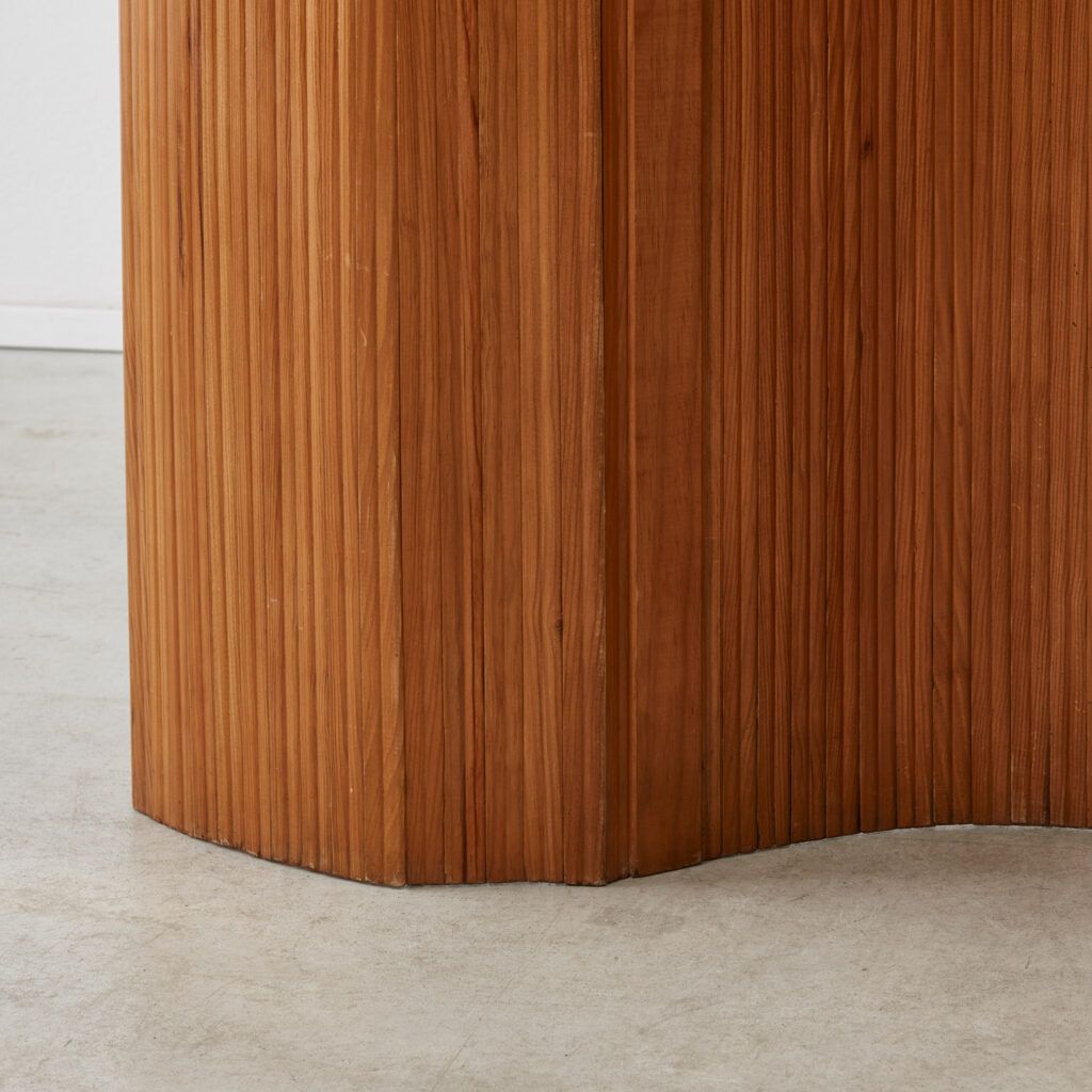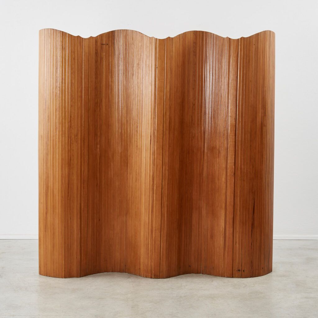 This twentieth-century Art Deco screen strongly recalls the hand of French designer Jomain Baumann. Its pine slats are stained and polished, and the flexibility of the joints – which are capable of unfurling in several configurations – is made possible by an invisible articulated system.