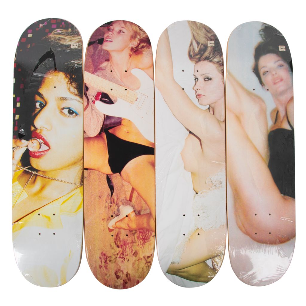 This incredibly rare deck set from Marc Jacobs features a look into their advertising archives of photos by Juergen Teller. They include Lisa Maria from spring 2000, Kate Moss from fall 2000, Stephanie Seymour from fall 2001 and M.I.A. from spring 2009. The decks are limited to 100 pieces each. All decks come in original plastic covering, in excellent condition