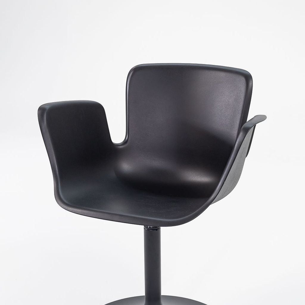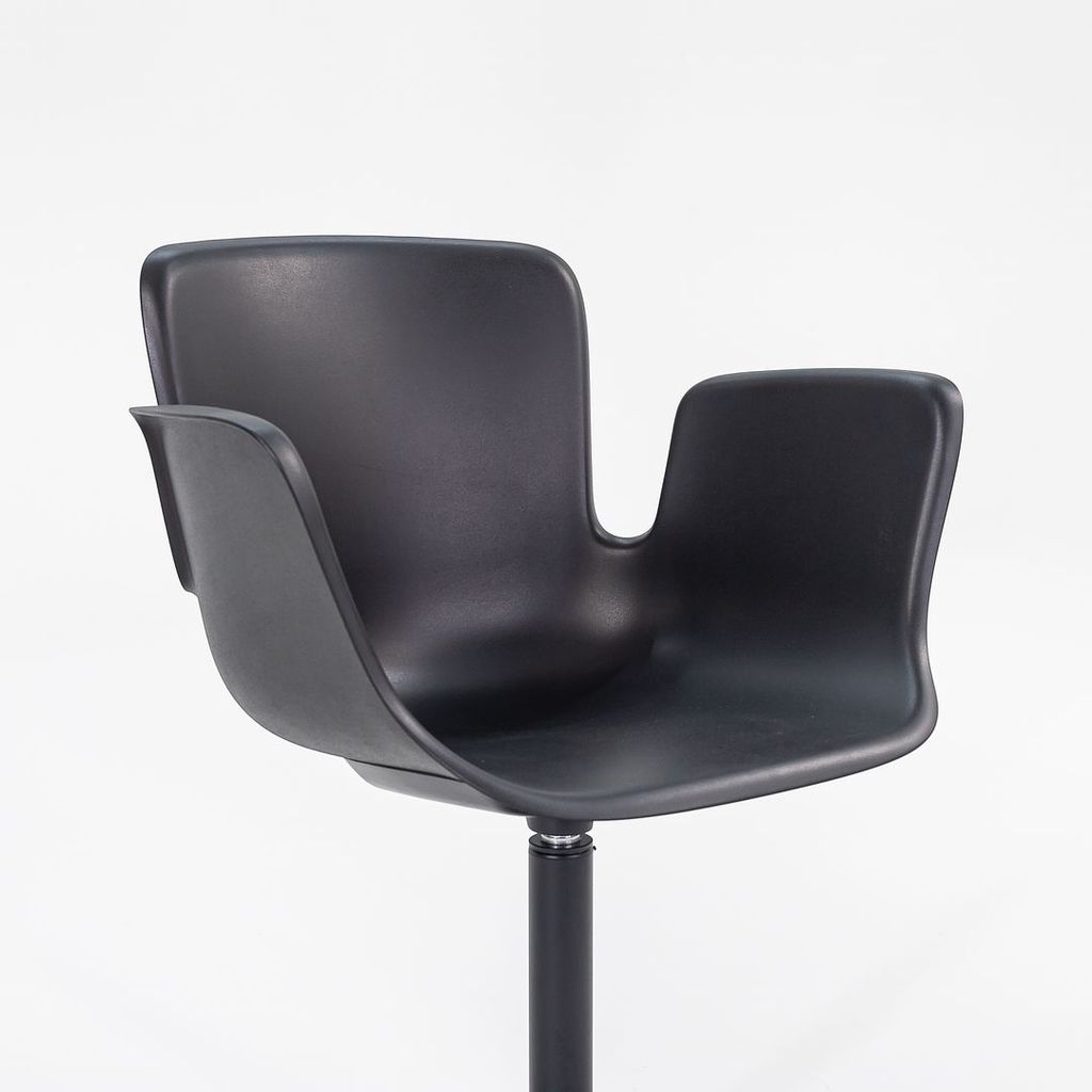 Listed for sale is a Juli Plastic Armchair made of black polyethylene with a black aluminum base. The chair was designed by Werner Aisslinger and produced by Cappellini in Italy. It dates to circa 2022 and is guaranteed as authentic. Condition is excellent. See photos.