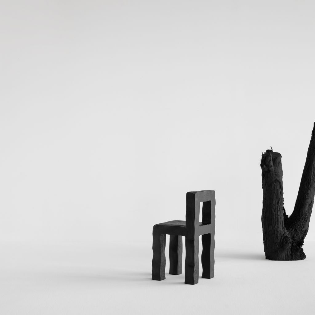 Hand curved Ash wood, burned to create black color smoothed and then matte lacquered.