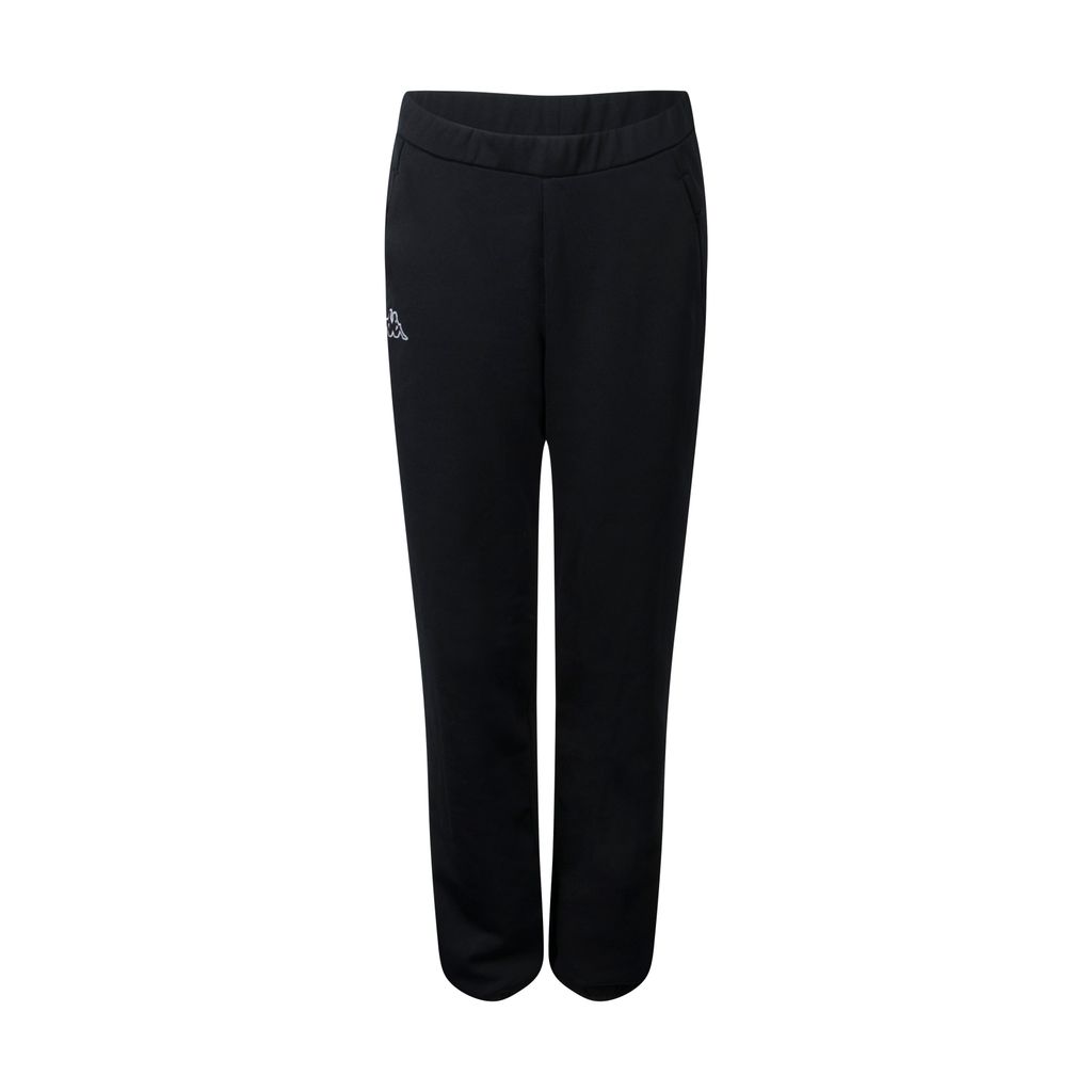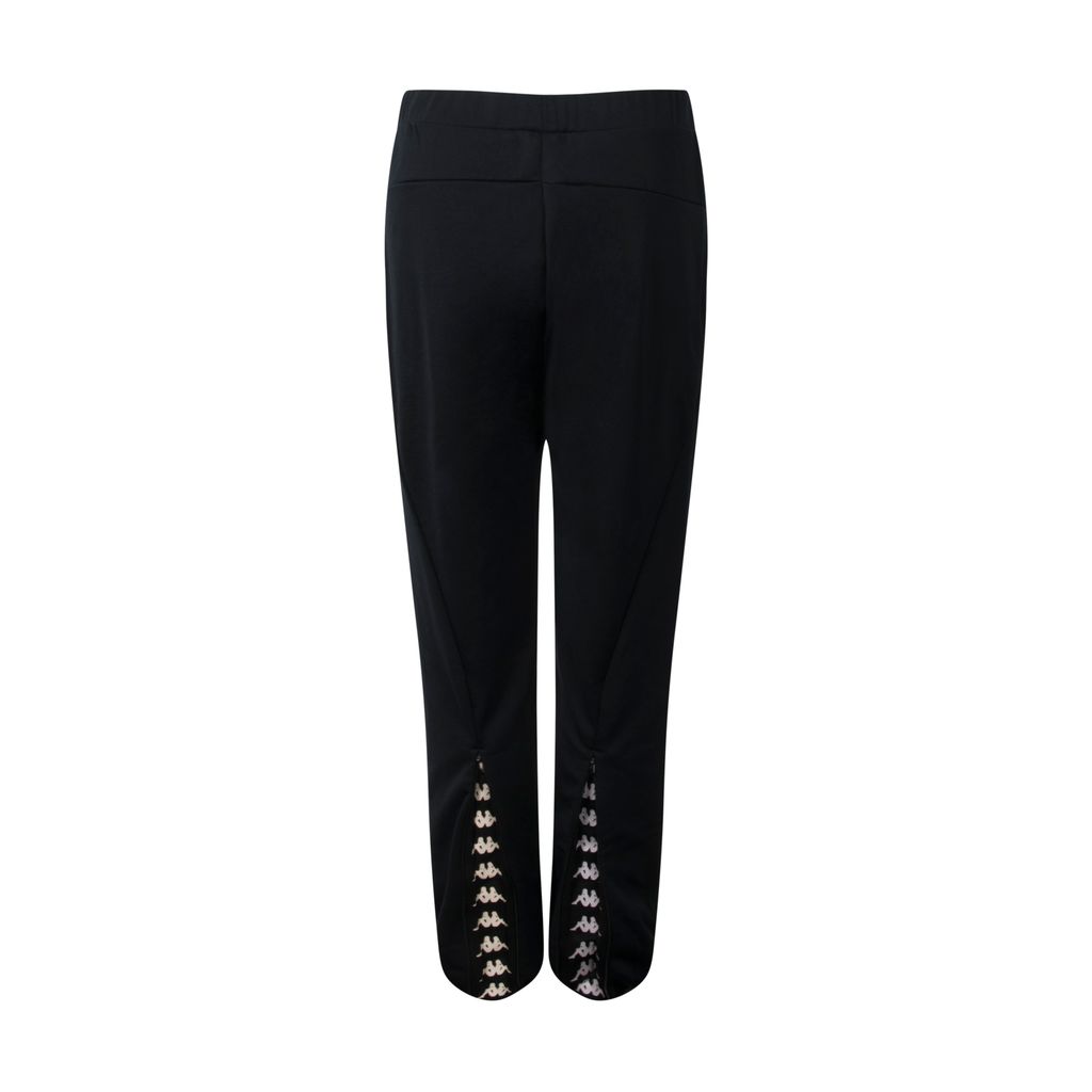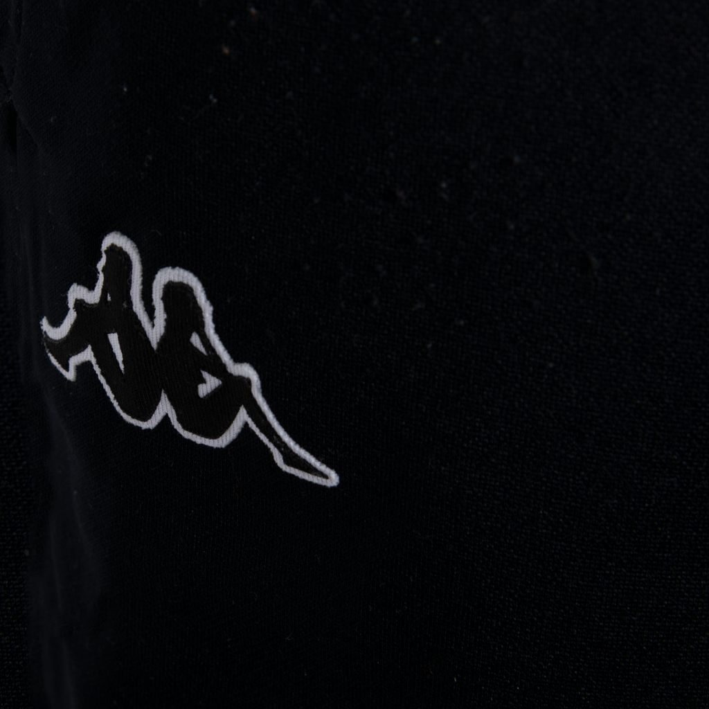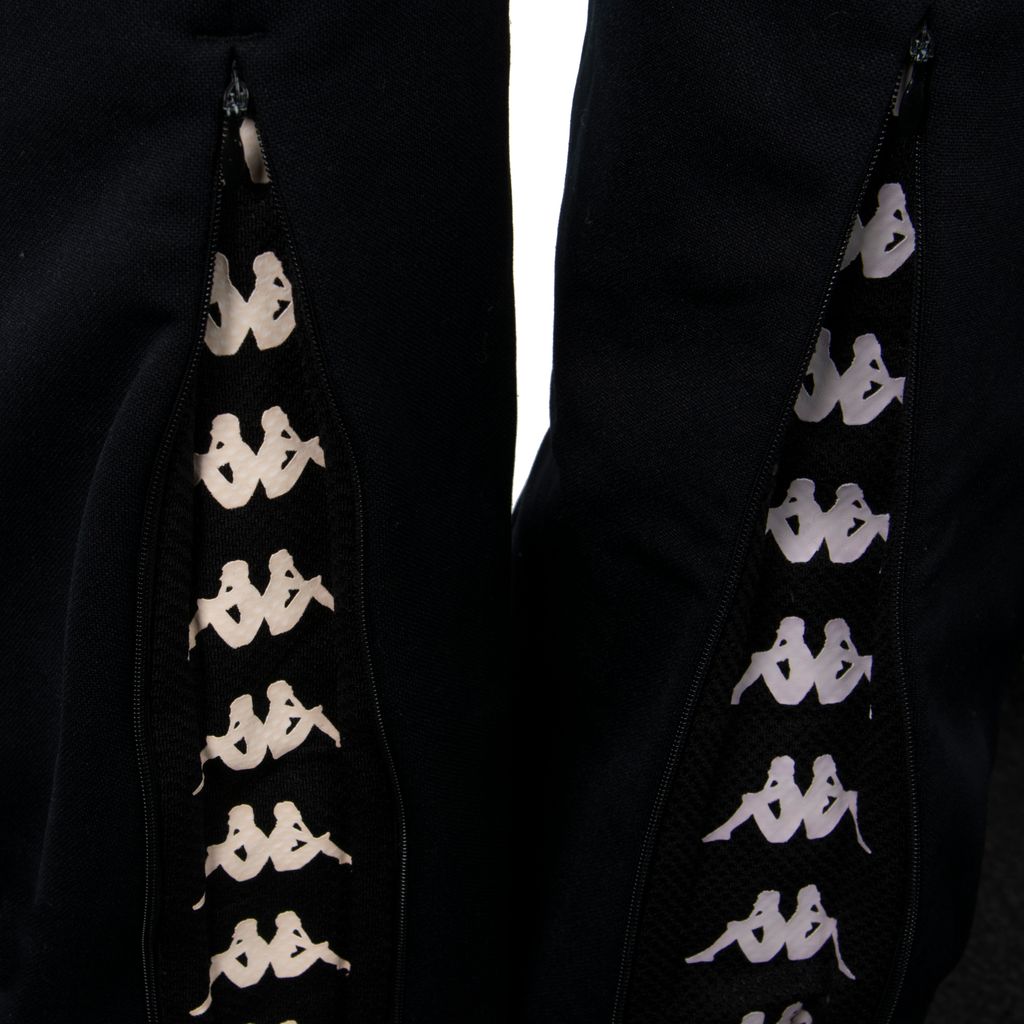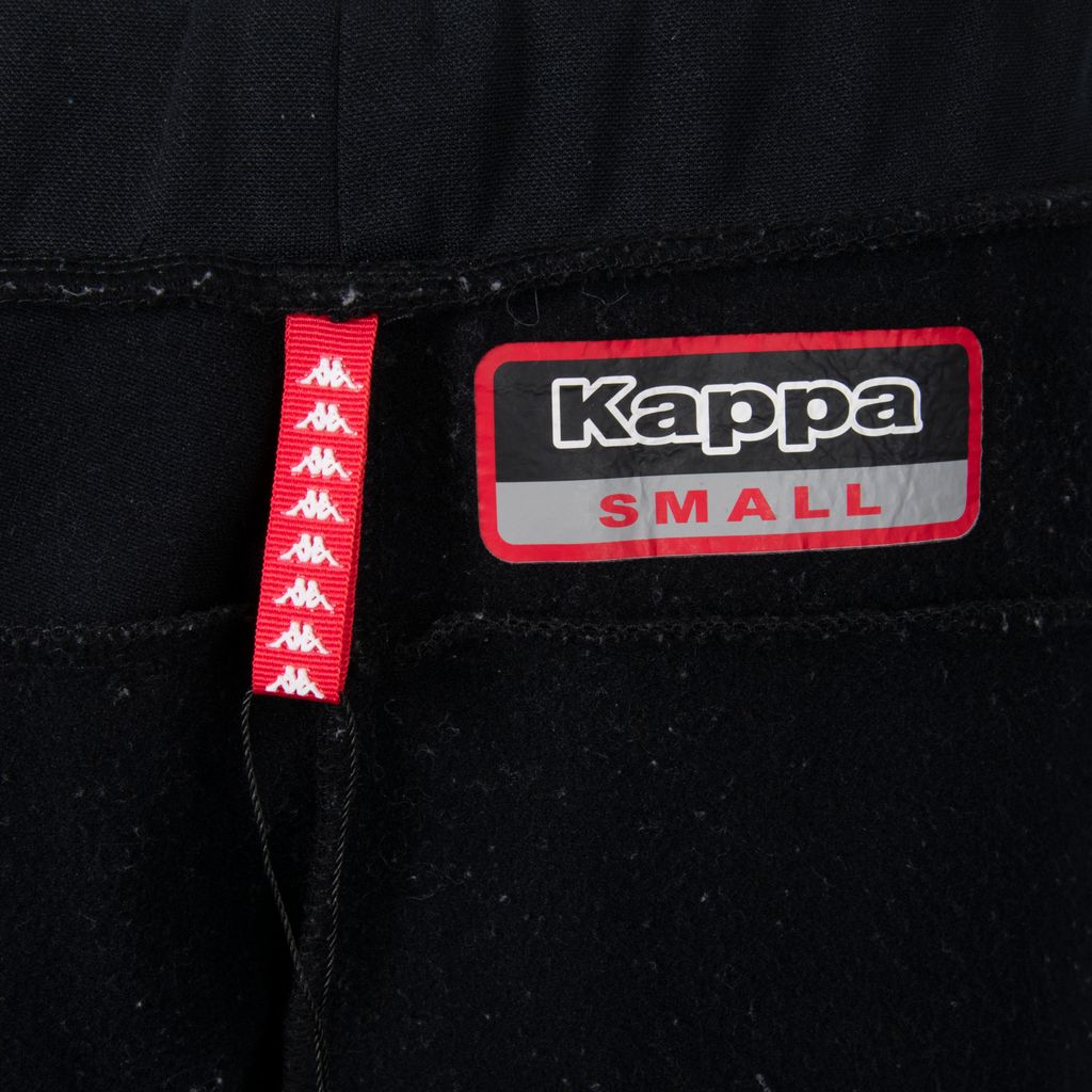 This heavyweight sweat pant from Kappa, features a nylon shell and fleece lining, an embroidered logo detail at the thigh, side pockets, elastic stretch waist, and hidden back zipper panel with logo detailing. Gently worn, pilling throughout from wear.