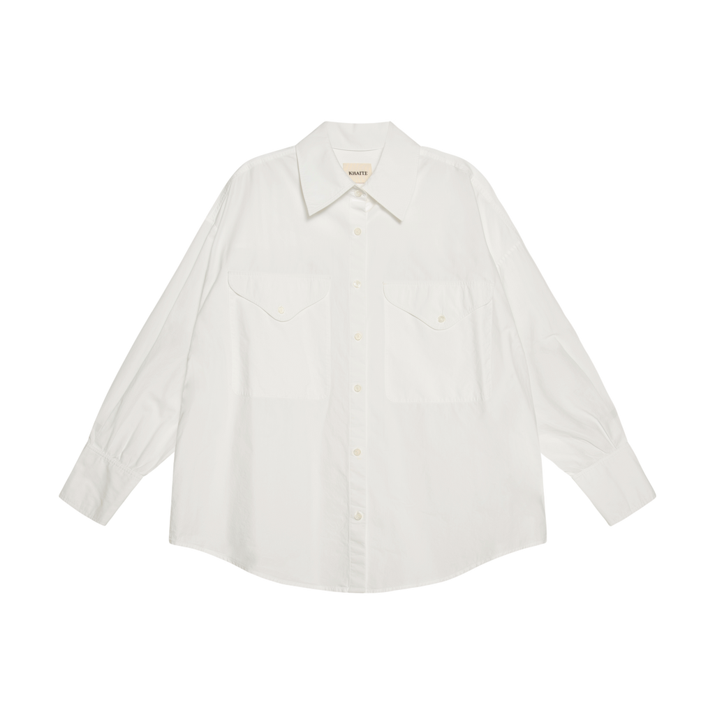 Khaite White Button Up Shirt features two chest pockets.
