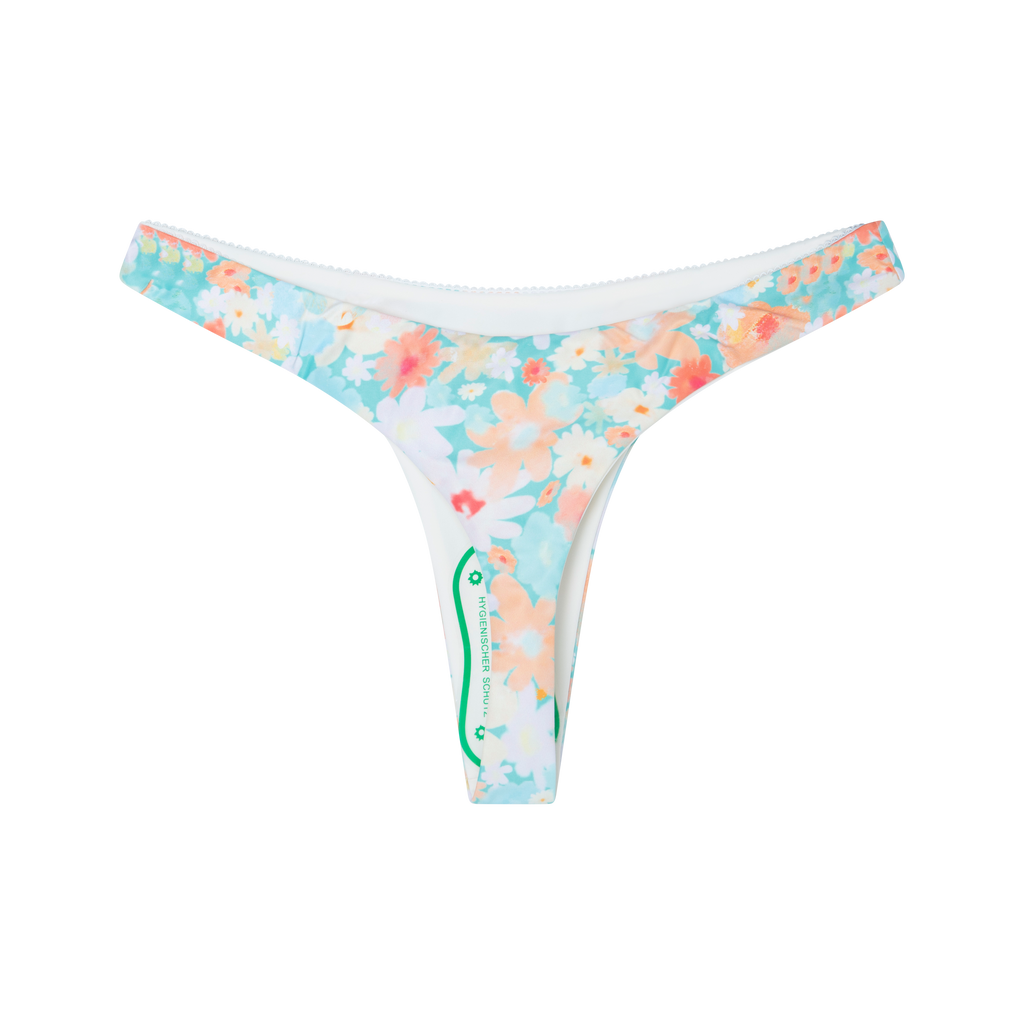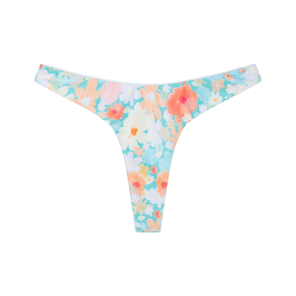 Kiara High Cut Thong Bottom features vintage floral print with flattering cut.