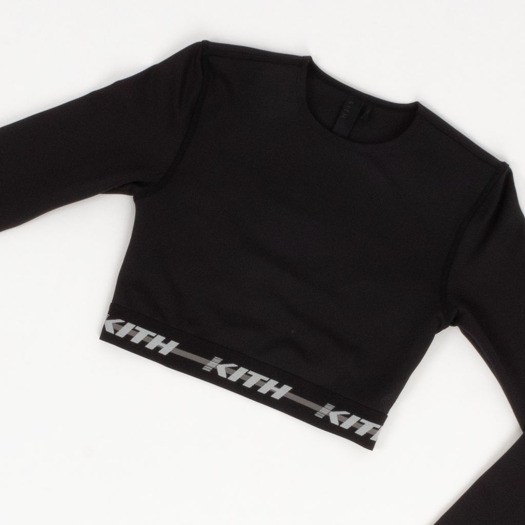Kith has you covered with this long sleeve crop top from their Sport collection. Cut out stylings and branded elastic band give off a streetwear vibe while the poly-spandex blend fabrication will keep you cool while you work up a sweat.