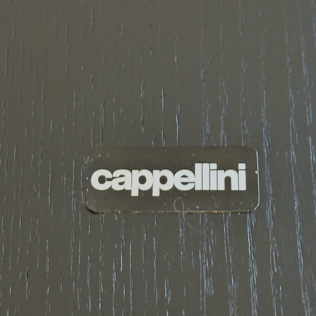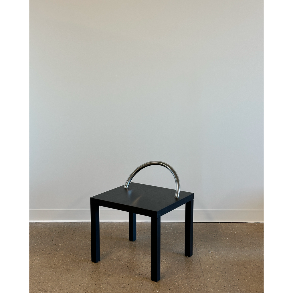 Italy, 1986. Black-stained ash table with polished chromed metal handle that allows it to double as a chair.