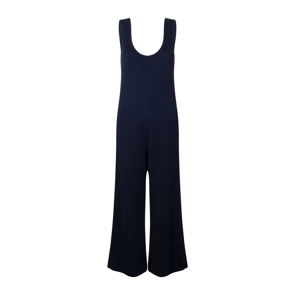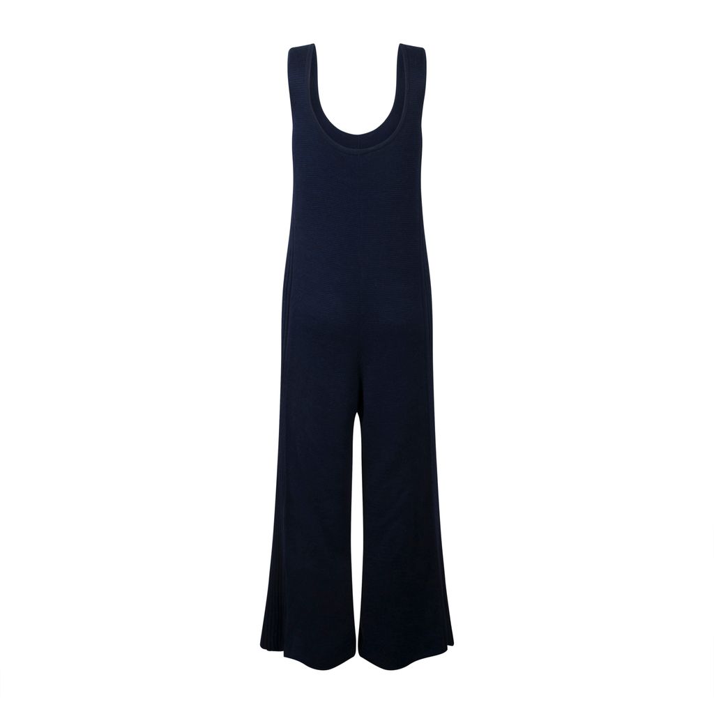Comfort comes first in this navy number from Kordal New York. This sweater knit jumpsuit features a scoop neckline, side-seam ribbed detail, wide straps, and has a wide-leg silhouette. Easy dressing for lounging in or running errands. Gently worn, in excellent condition.