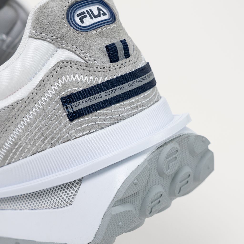The Renno sneaker was crafted in recycled leather, mixed with materials including nylon, suede, and ripstop mesh. The sneaker is anchored by FILA's Energized midsole cushioning for added comfort, and completed with a mesh-covered midsoleĀ