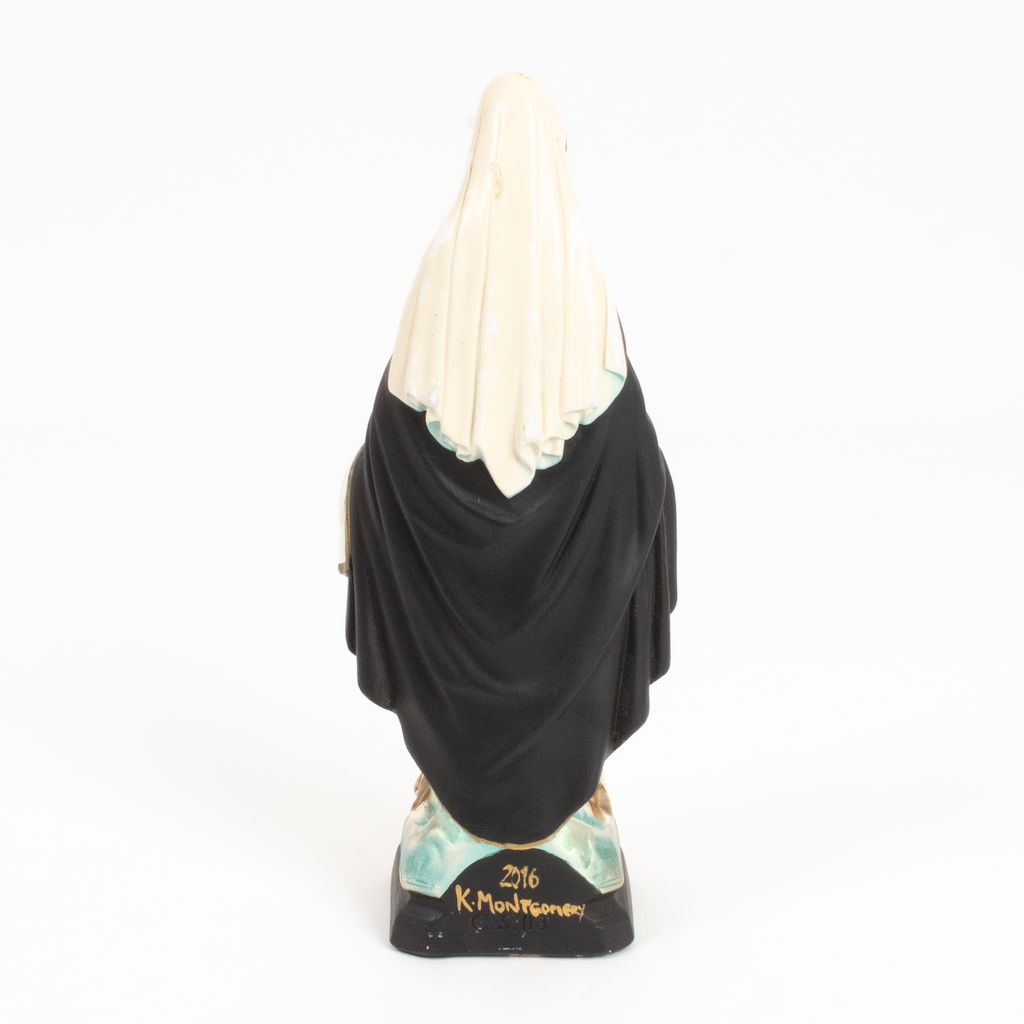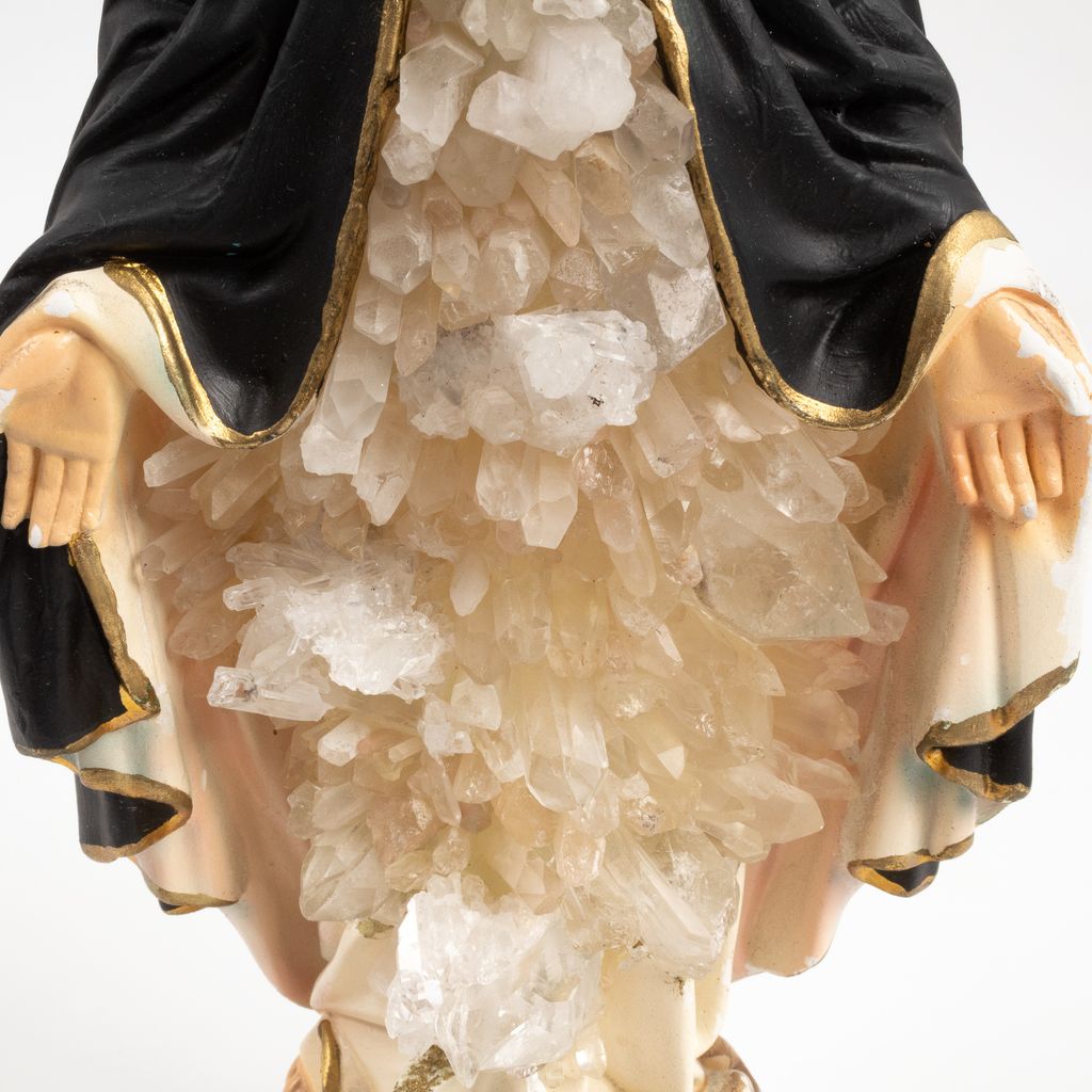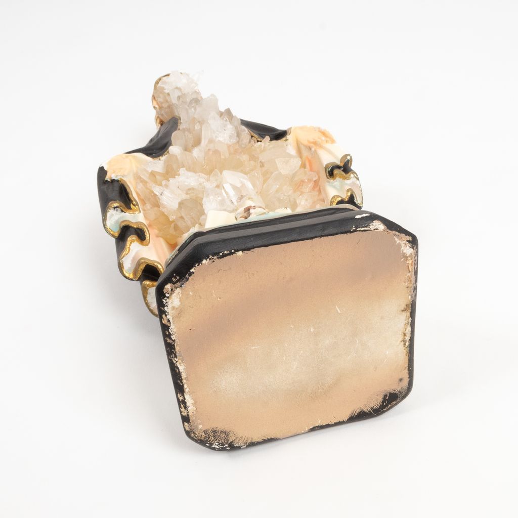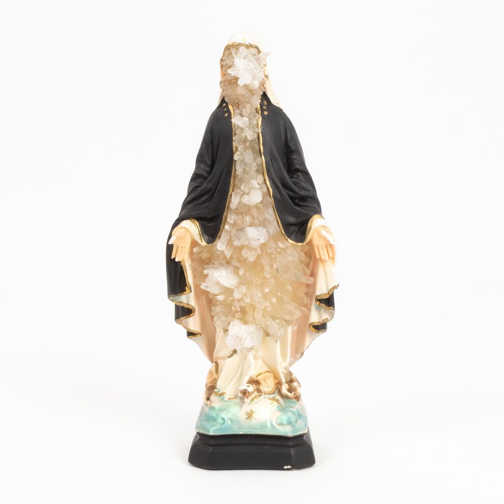 Montgomery explores symbolic items from both religious and spiritual realms and to discover their true relevance. He’s forever on the hunt for preloved ‘Mary’ statues—a common icon for the christian faith, believed to offer guidance and support on the path to life after death. He also hunts crystals, interested in the knowledge and power they’re said to possess, plus their ideological relevance to those on a more spiritual side of the fence. This particular piece combines both of those aspects, and comes with an artist's signature to boot.