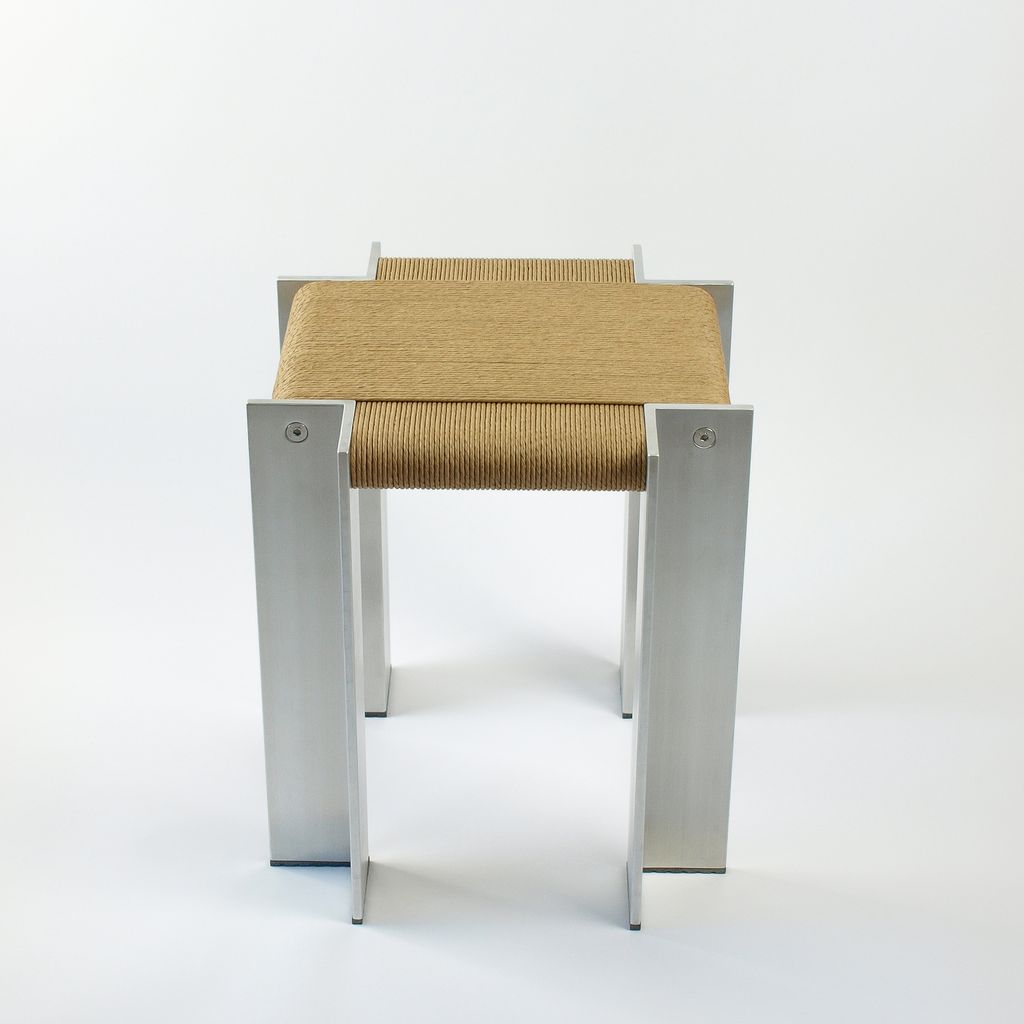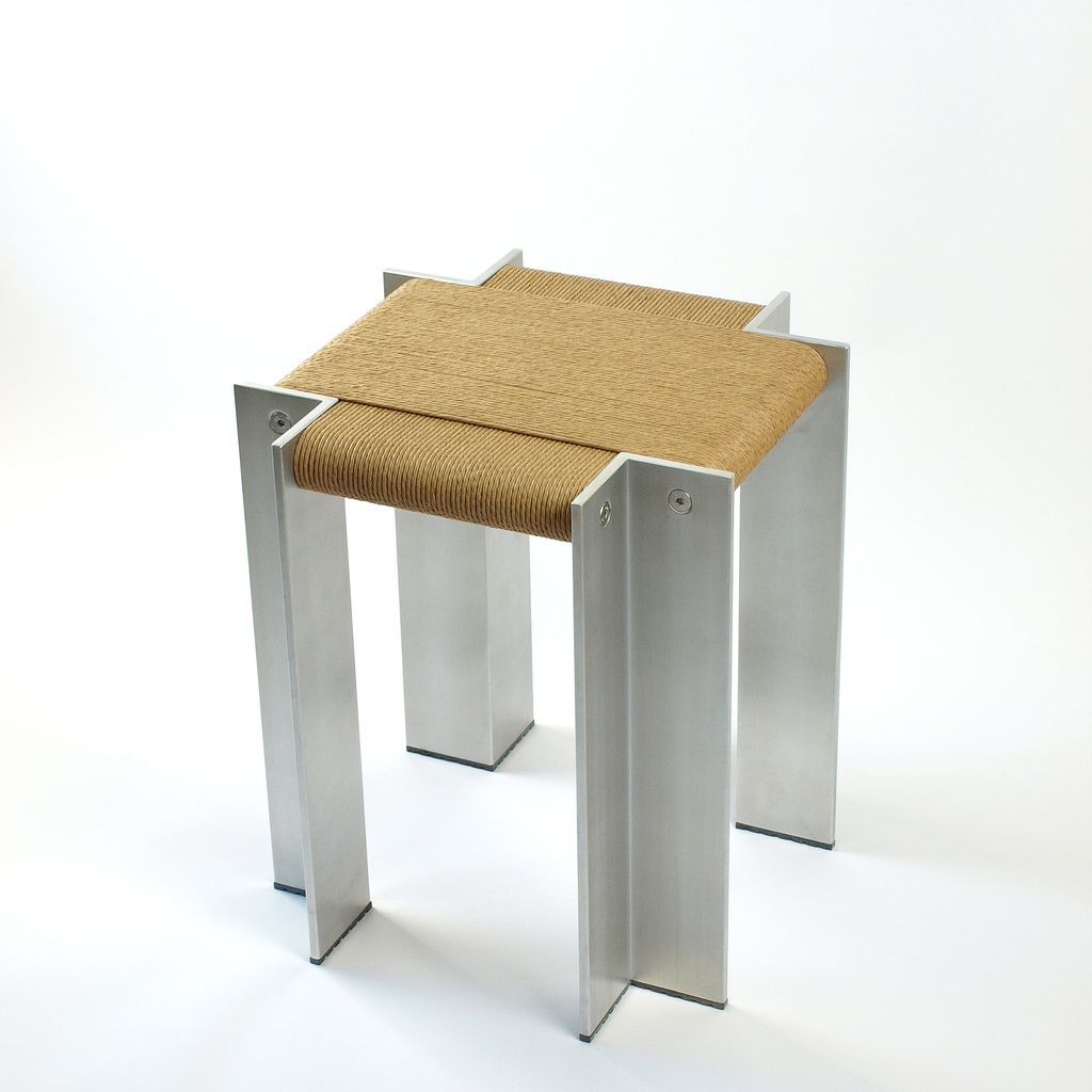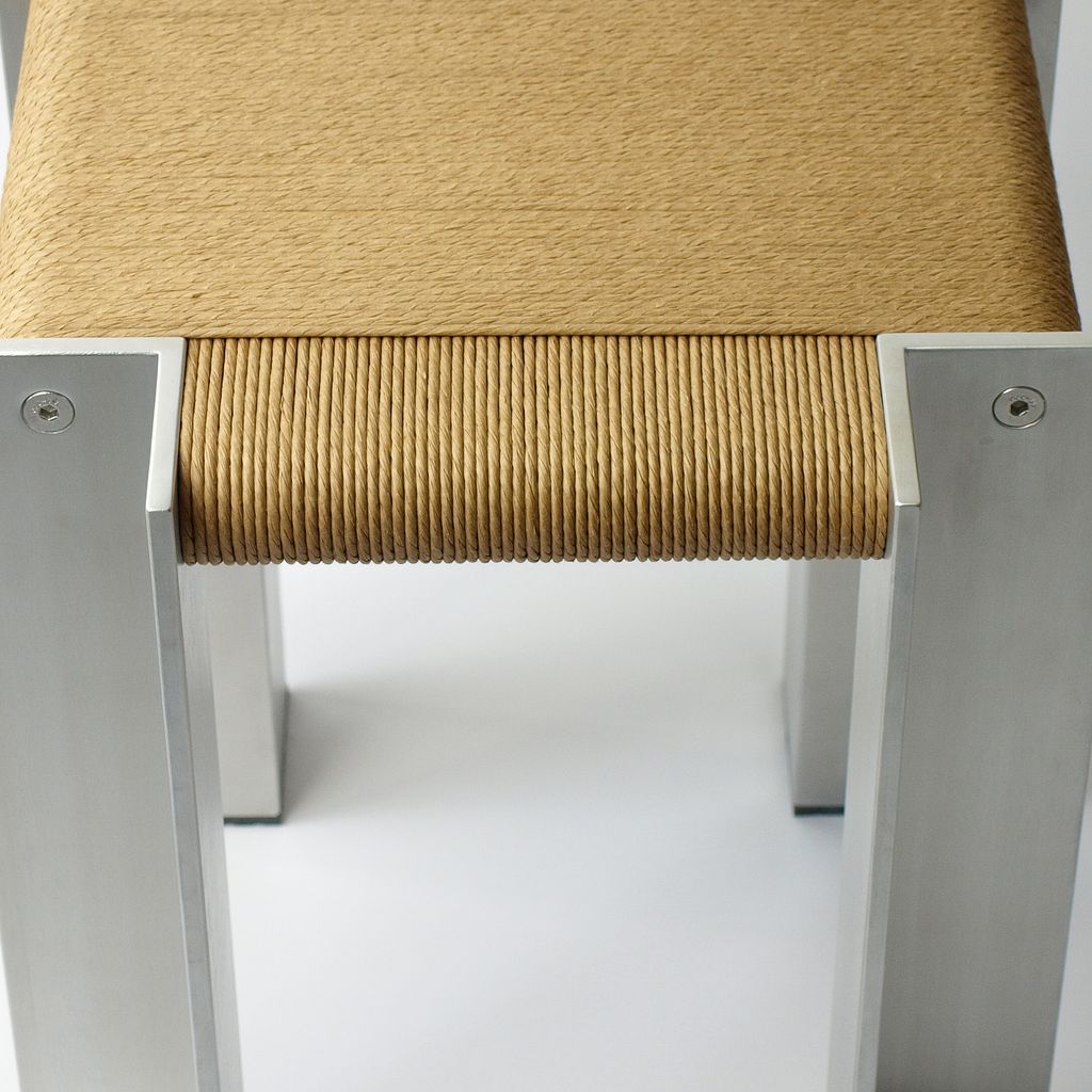 Hand brushed and waxed aluminium, Danish rope, Inox hardware.