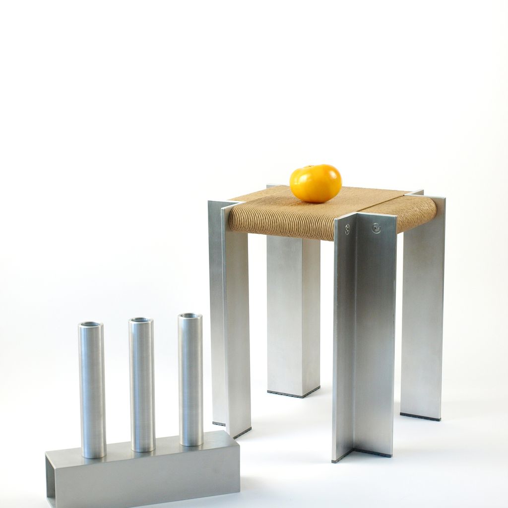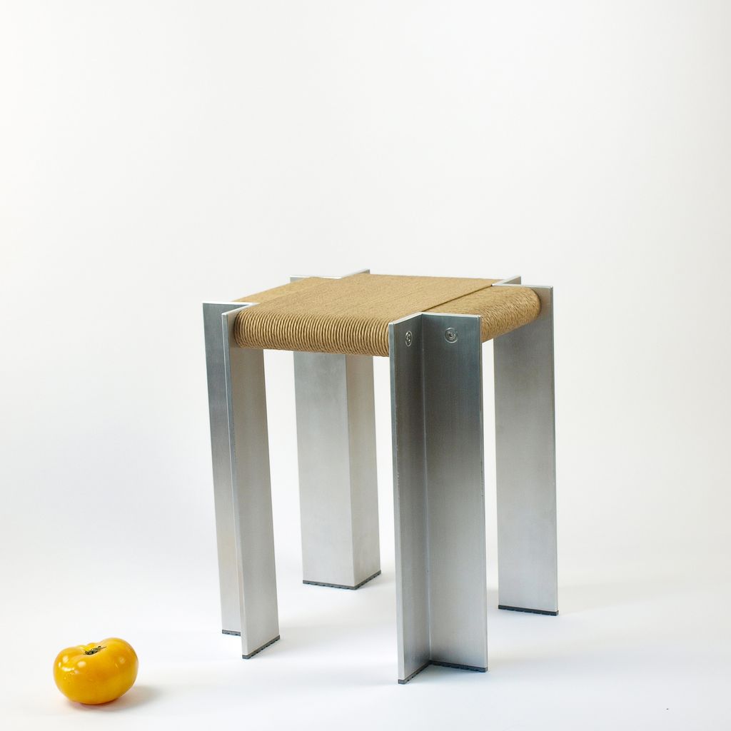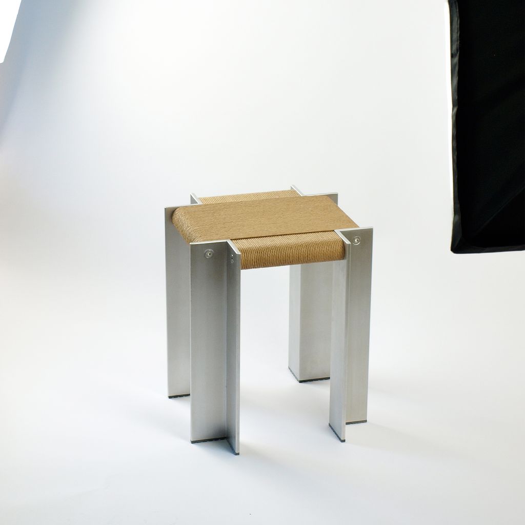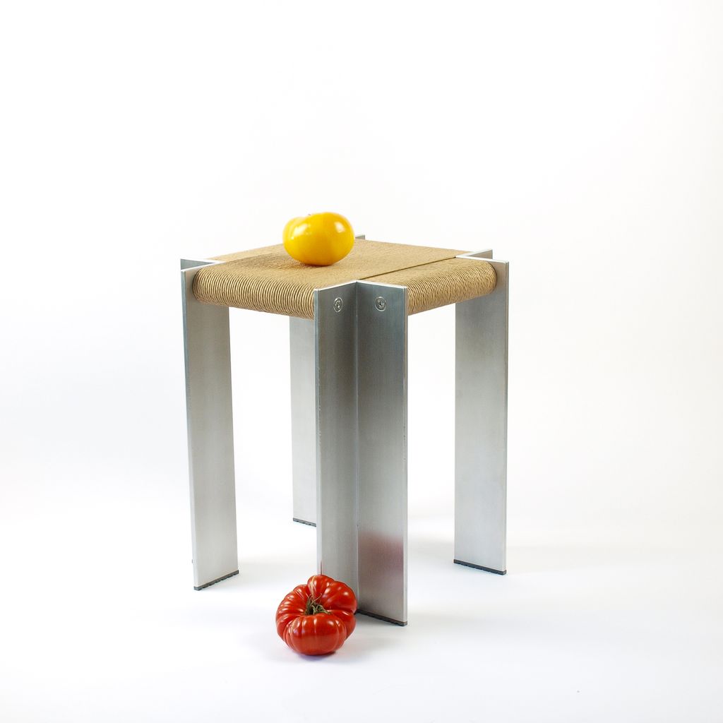 Hand brushed and waxed aluminium, Danish rope, Inox hardware.