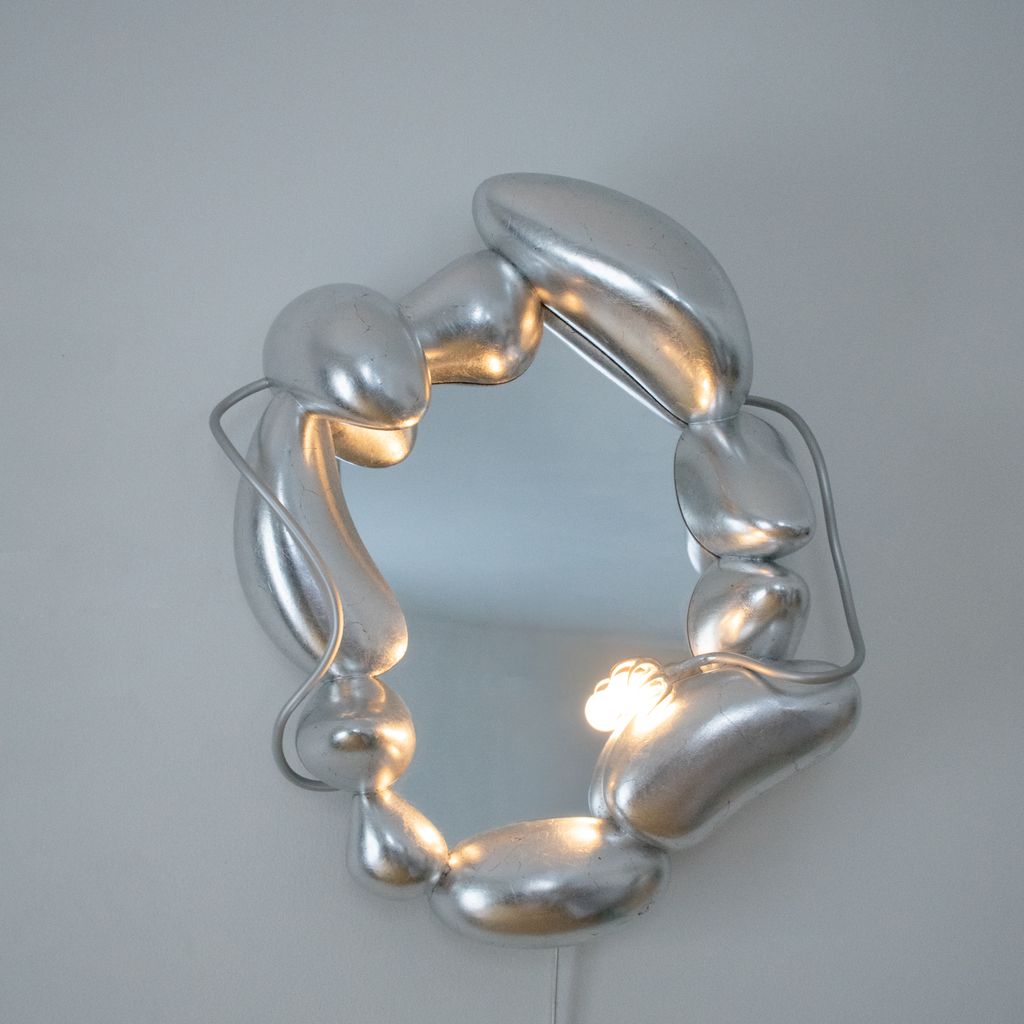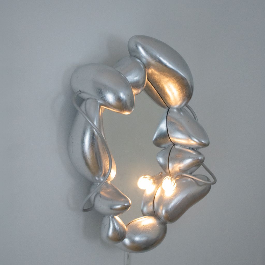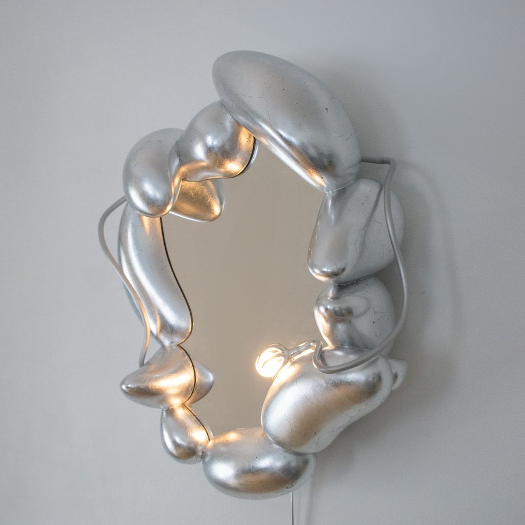 La Fleur Endormie is the latest piece of a new series of objects, the Lueur Series, exploring different expressions of hope. The piece is a reflection on hope and the passage of time. It portrays a flower slowly dying, yet still giving off light, a symbol of resilience in the face of change. As the flower faces its own decline, the viewer is reminded of life’s fragility and the beauty that can exist even in moments of loss. Surrounded by organic forms, the piece creates both a physical and emotional experience. The work explores how light and beauty can persist even as things fade. It offers a reminder that there is still hope in fragile moments. This mirror is a hybrid piece, born from the fusion of two techniques that rarely meet. On one side, gilding, a traditional craft dating back to antiquity, rooted in history, precision, and handwork. On the other hand, 3D printing, a modern tool that allows total freedom of form and experimentation. The piece was fully crafted by the artist, who worked closely with gilding experts in Paris to understand and respect the depth of this ancestral technique.
