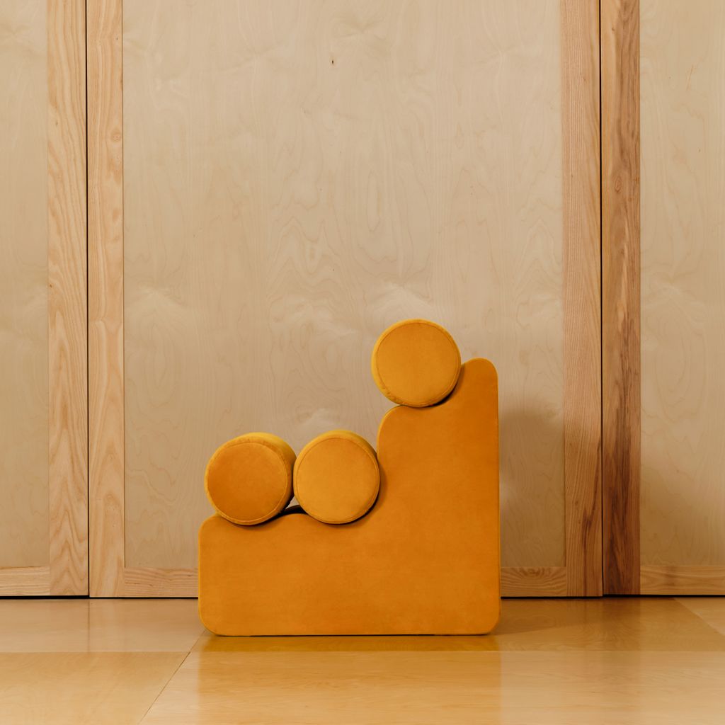 La Pepino is a collection of seating variations, built on the repeating pattern of cylindrical cushions, and supported by an organically shaped base. Every piece comes fully upholstered in customizable fabrics, and plays with the different points of contact between cushion and body.