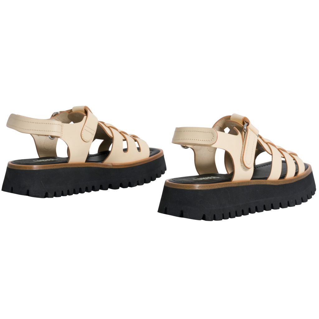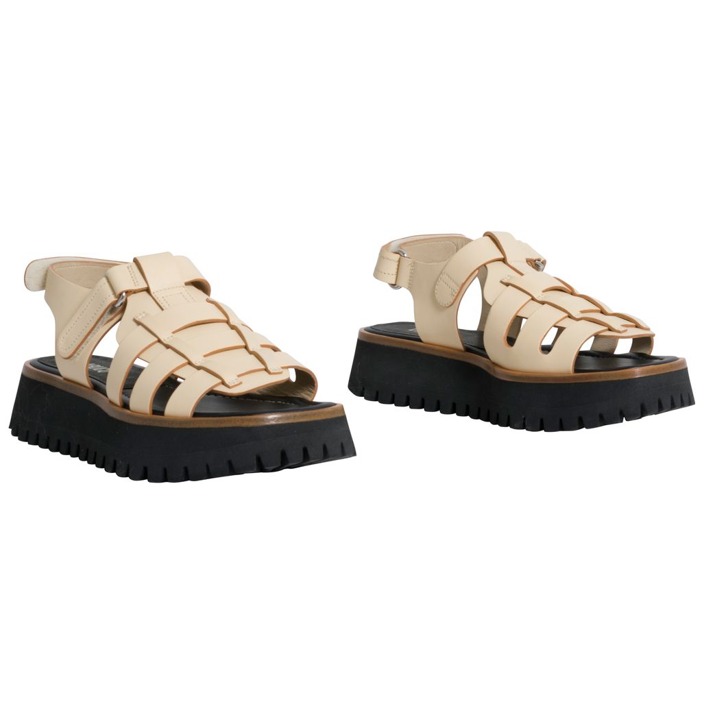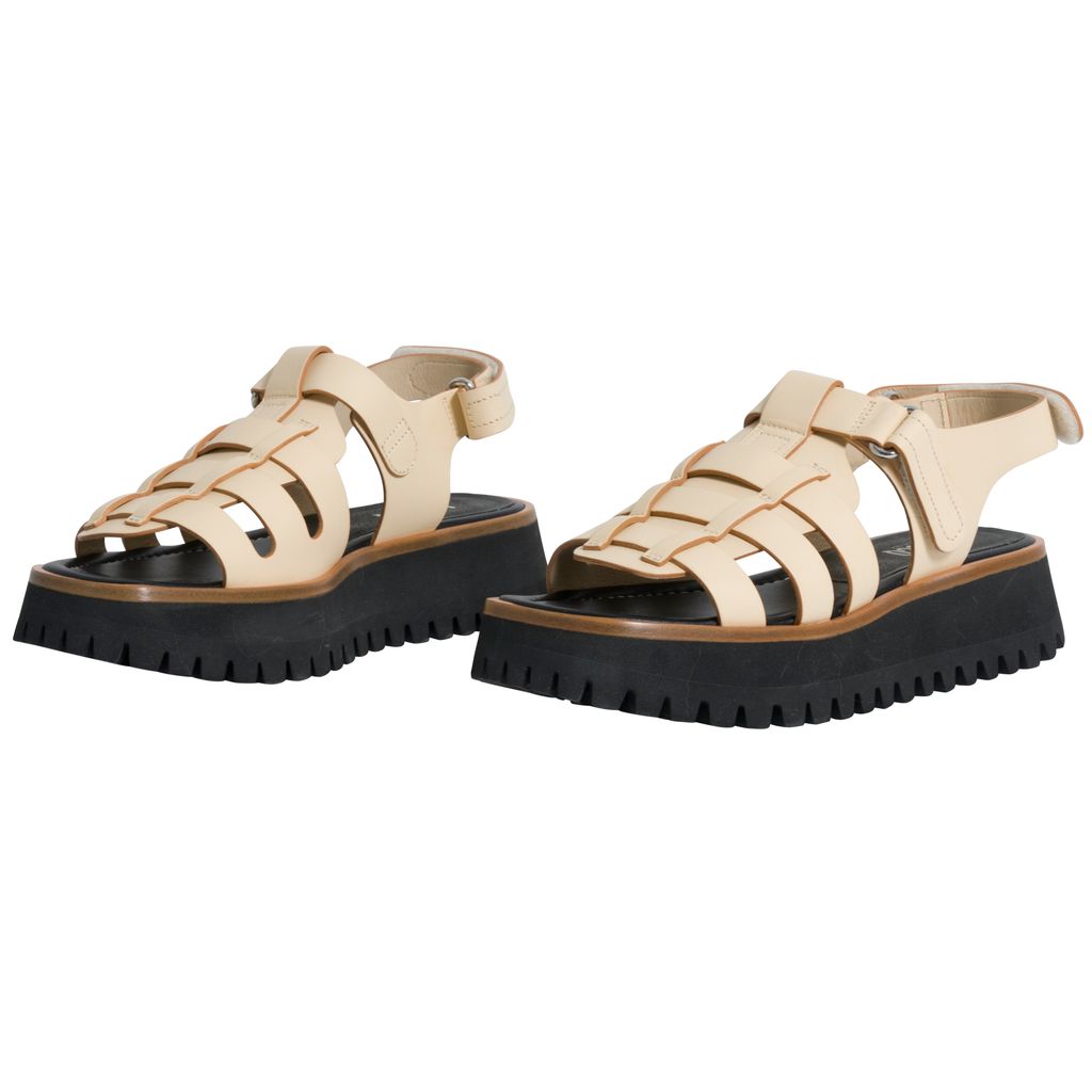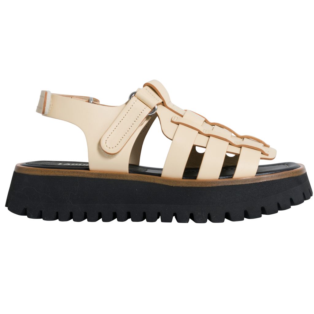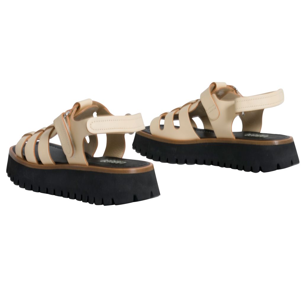 Handmade in Tuscany, these sandals from Labucq feature Italian vegetable-tanned calf leather uppers with calf leather lining, hook and loop closure straps, and foam cushioned insole. In excellent condition. Comes in original box.