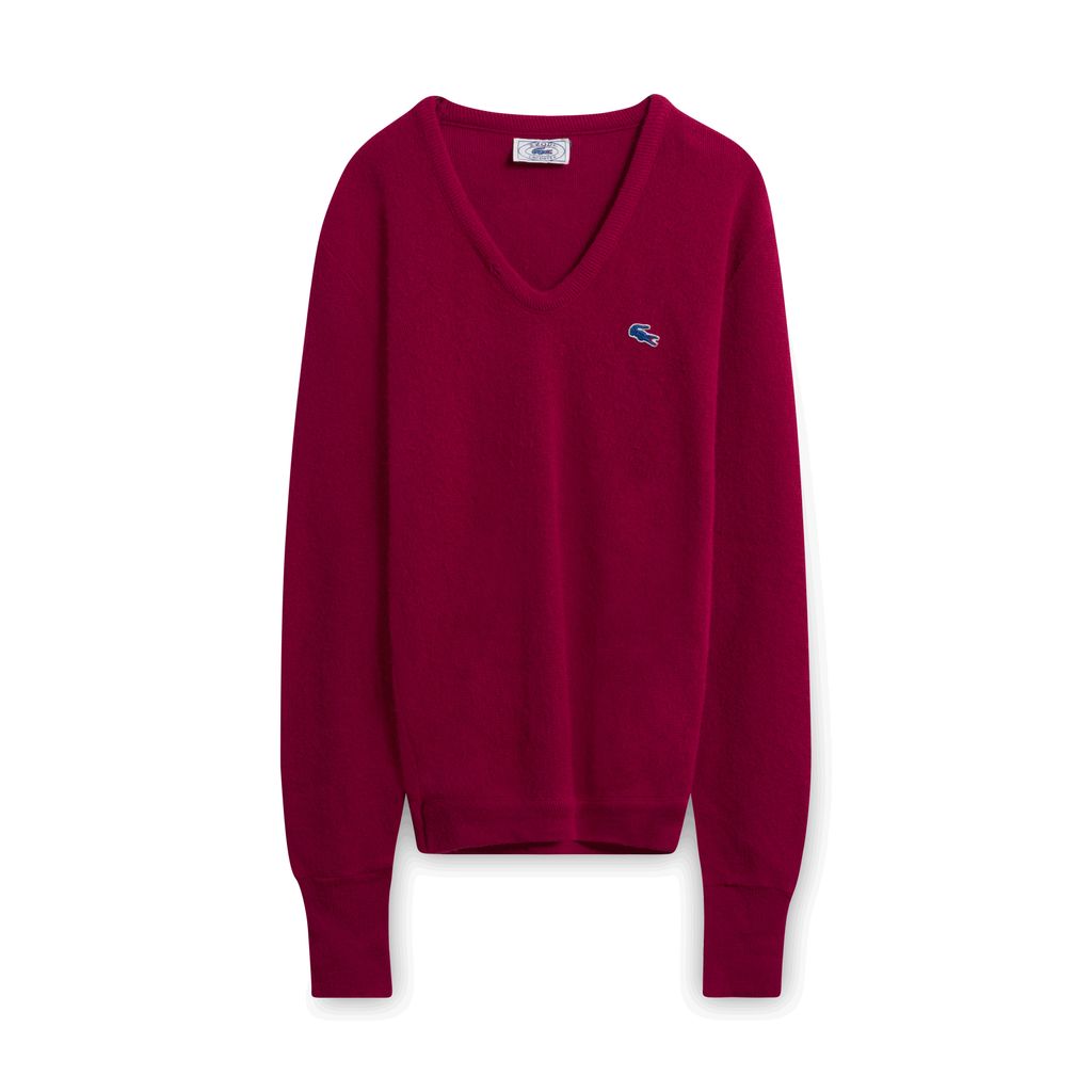 Lacoste Crocodile Logo Sweater features v-neckline and embroidered crocodile logo.
