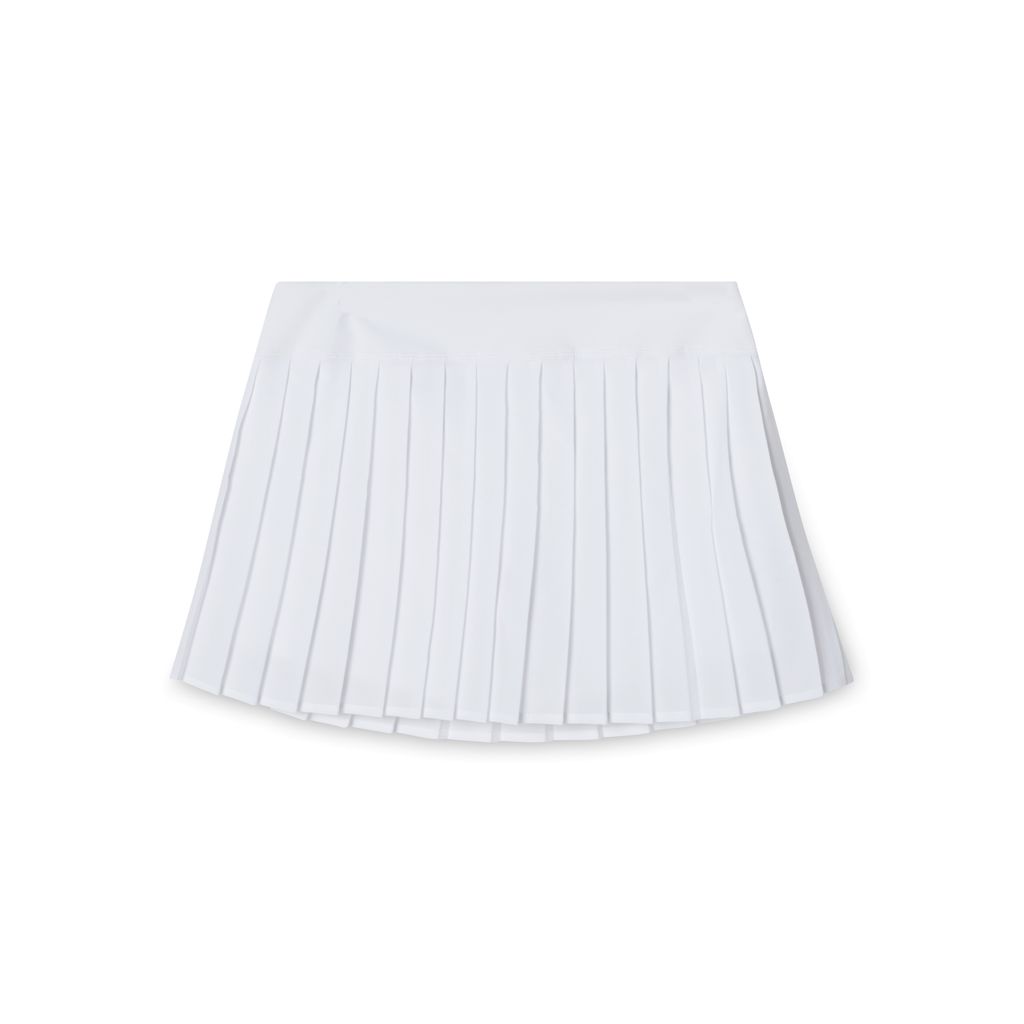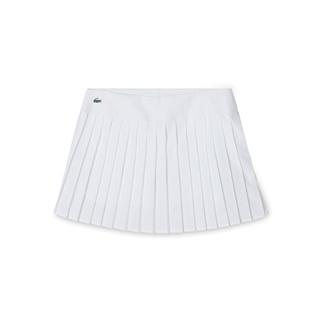 Put your best foot forward in the Lacoste Women's Technical Lightweight Pleated Tennis Skirt in Blanc. This one is a timeless classic - solid-white, classic pleated tennis skirt that you can wear on the court all year round. You'll love its breathable, stretchy material and its supportive built-in shorties. Ultra-dry properties offer sweat management so you can play your best.