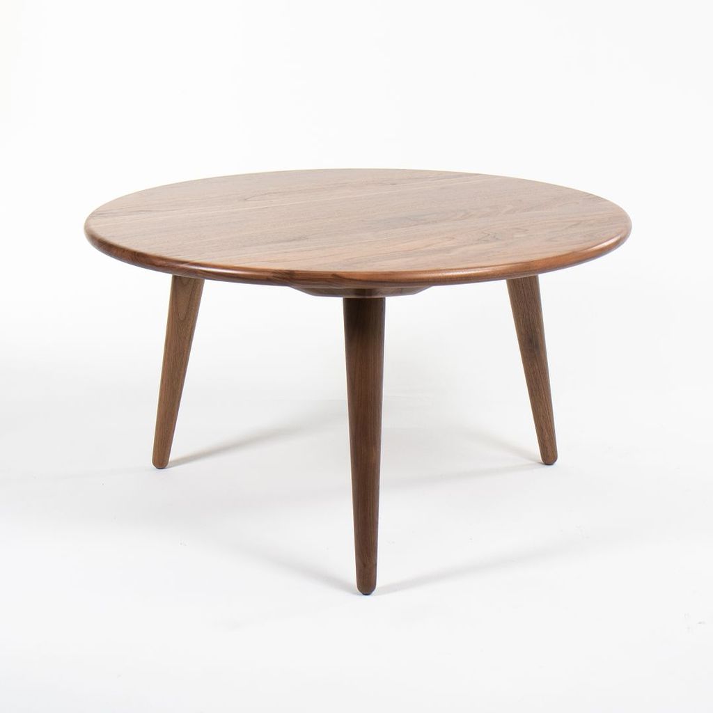 This is a CH008 coffee table made with a lacquered walnut oak top and legs. The table, designed by Hans Wegner and produced by Carl Hansen & Son in Denmark, dates to circa 2021 and is guaranteed as authentic. Condition is excellent with only light wear. See photos. It was used as a display model and came directly to us from Carl Hansen.