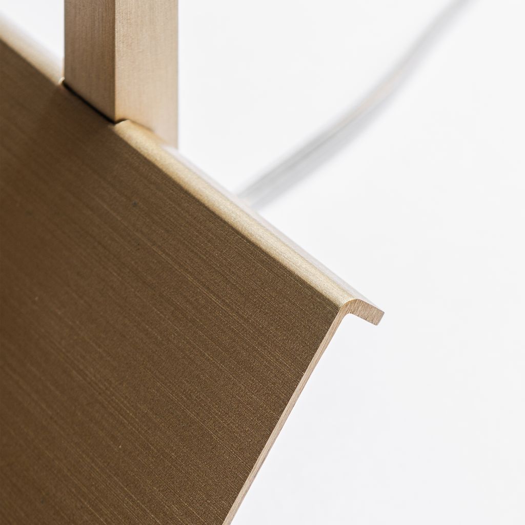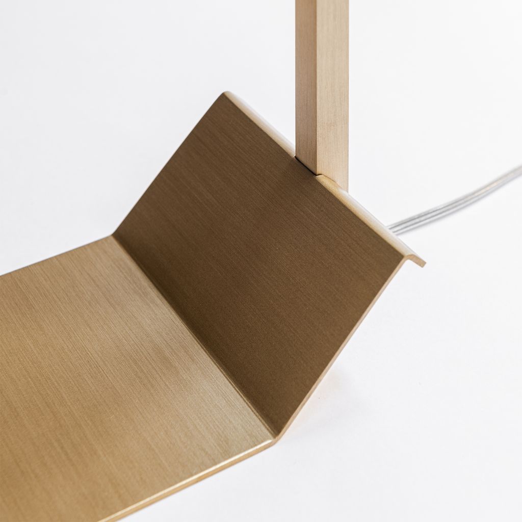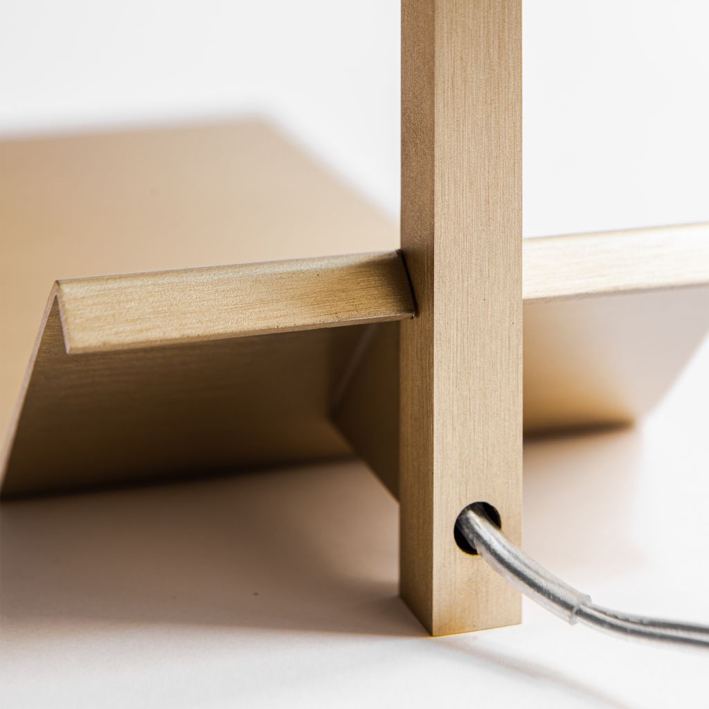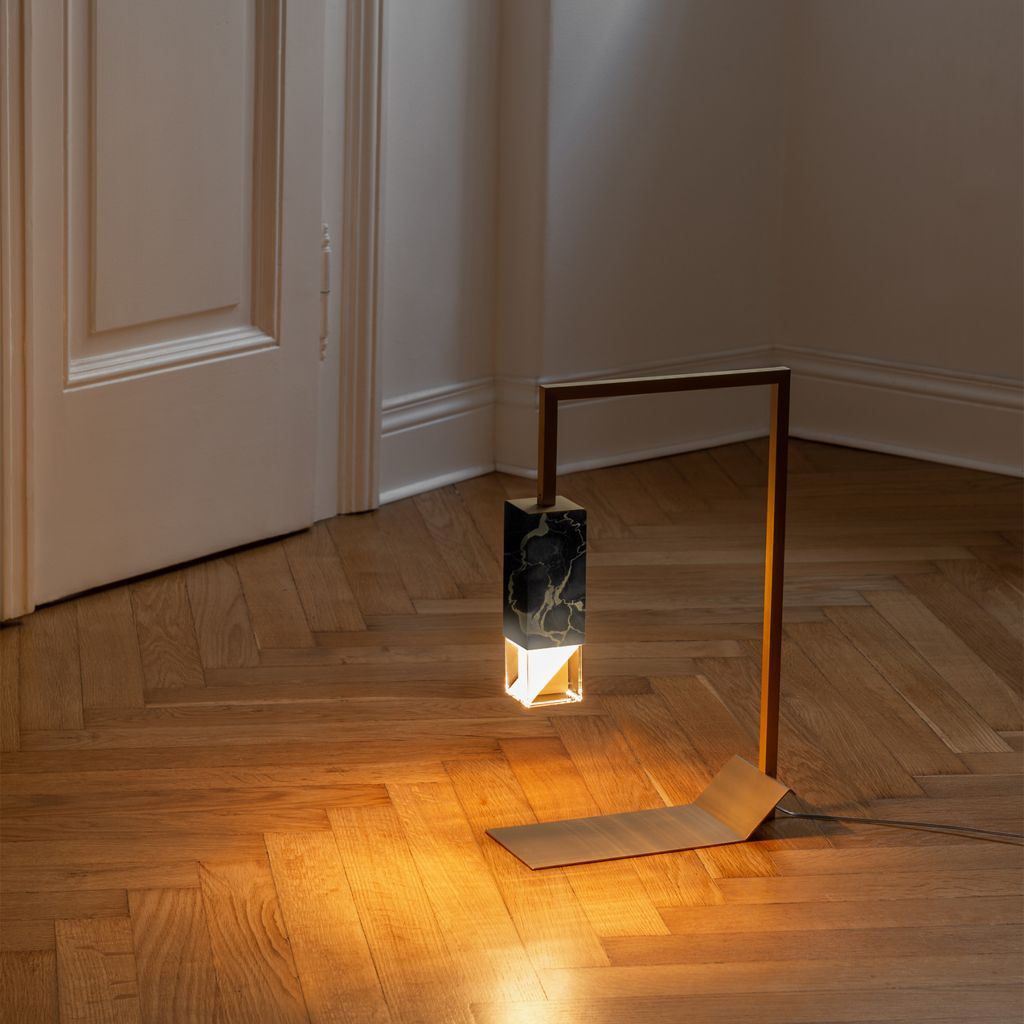 Part of the Lamp/s Collection Black Edition, Lamp/Two Black represents the sophisticated and luxurious décor object that any Interior needs. The solid marble Portoro Gold vein, known also as “Black & Gold marble”, here is masterly handcrafted by the excellence of Formaminima artisans, and characterised by a velvety black background, crossed by precious large yellow-gold veins. Extracted from the beautiful “Gulf of Poets” of Portovenere in Liguria-Italy, this prestigious polychromatic marble has been employed, among others, in the decoration of Versailles castle in France. A sleek solid brass squared tubular, enriched by the golden nuance of a satin matt finish, perfectly matches with the golden veins of Portoro Gold, designing the silhouette of this refined table light, which provides a soft downlight into the surrounding space.