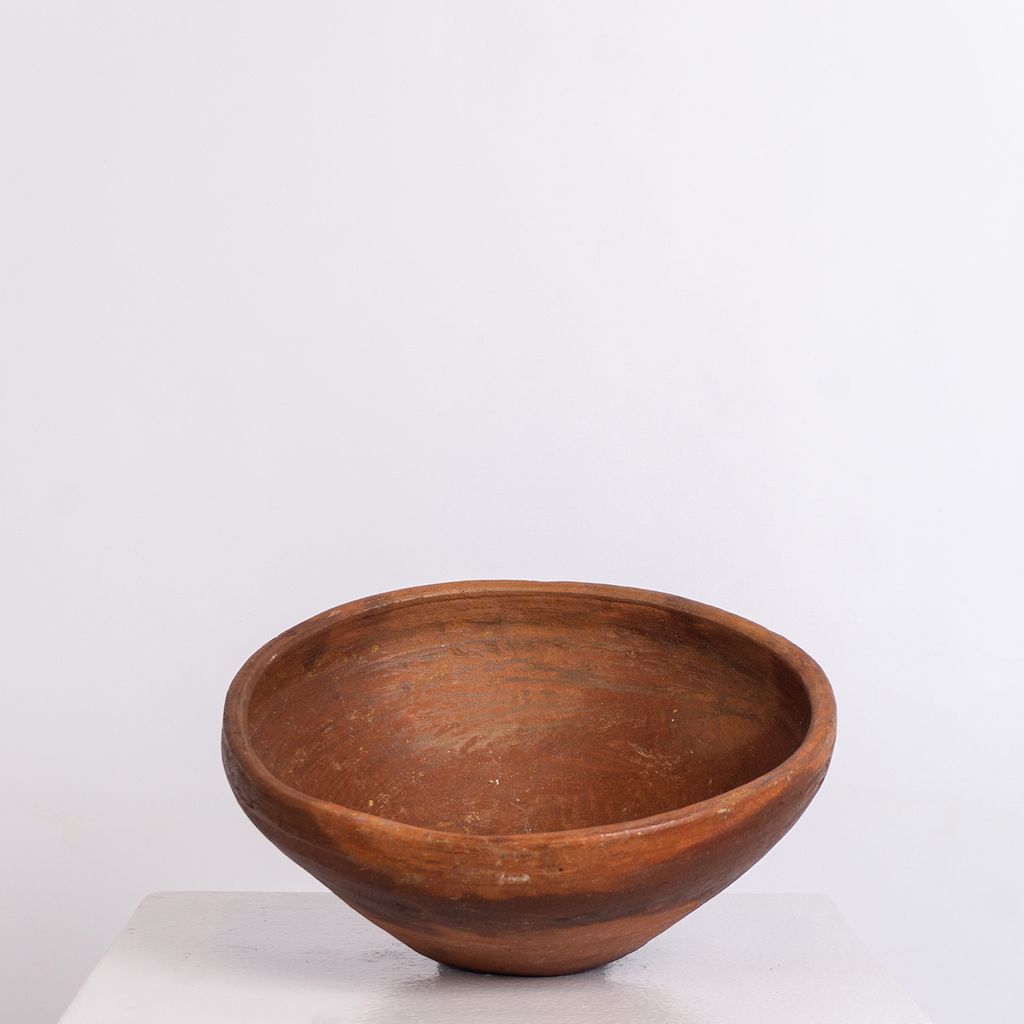 Handmade by skilled artisans, its textured ceramic surface and earth tone colors embody the Oaxacan style. A striking focal point for any space, this vintage masterpiece seamlessly blends artistry and history to elevate your décor. x12" dia. x 5" h