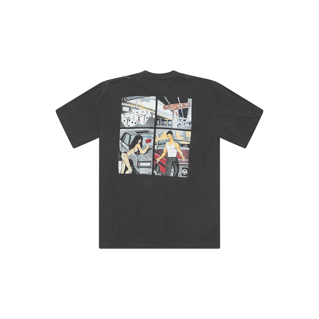 Latino Heat Tee features classic crew neck collar and graphic design.
