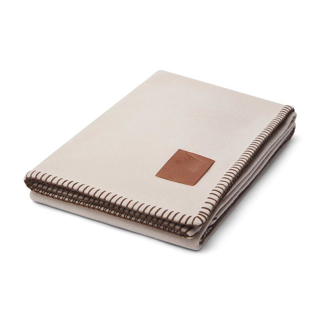 This version of our Merino blanket in beige features a chocolate brown horse stitch detail, and a leather label in hazelnut. Ultra-light and incredibly soft. Ideal for adorning a lounging space and compact enough to be a cozy travel companion.
