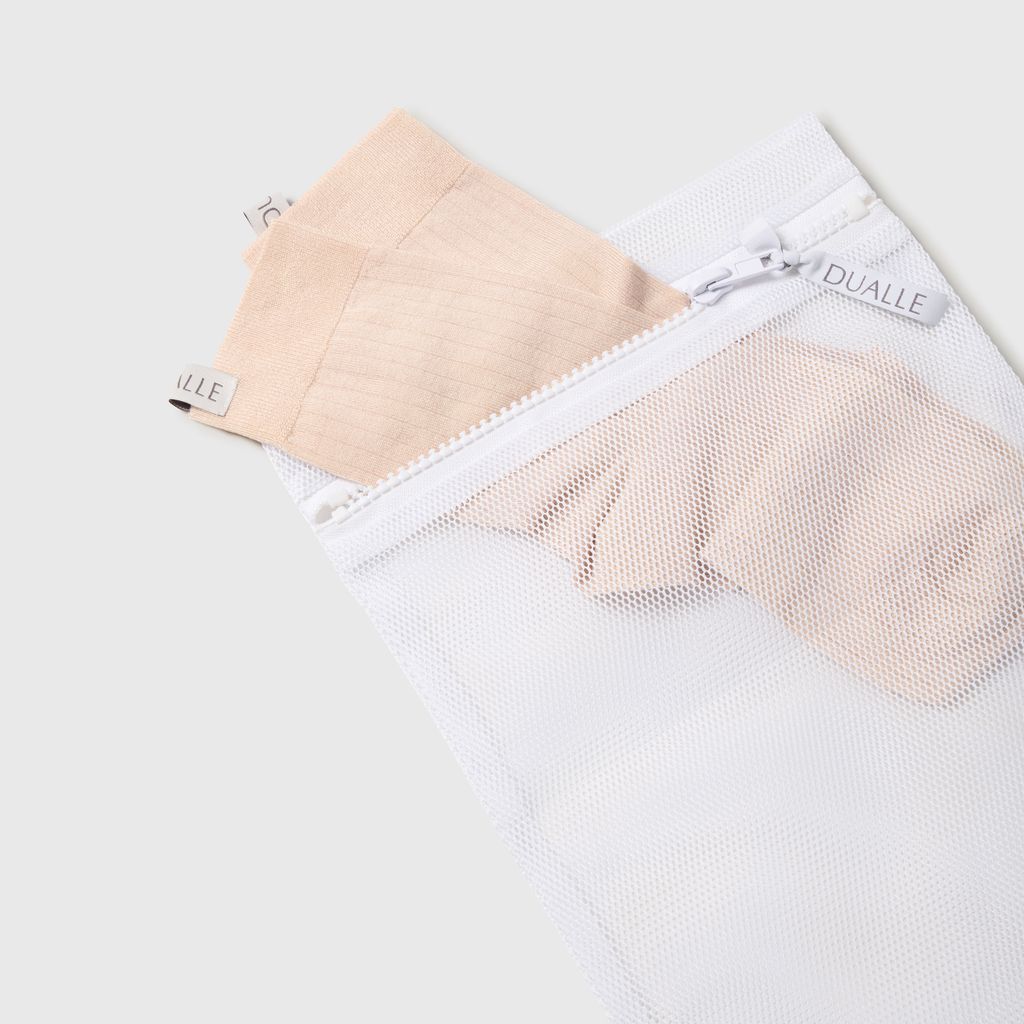 Protect your carefully crafted and naturally dyed socks made from silk, Seacell™, and other fabrics with our 20×30 cm laundry bag. Using the bag in the washing machine preserves fabric quality and color. Wash on "delicate" at 30 °C with eco-labeled detergent.