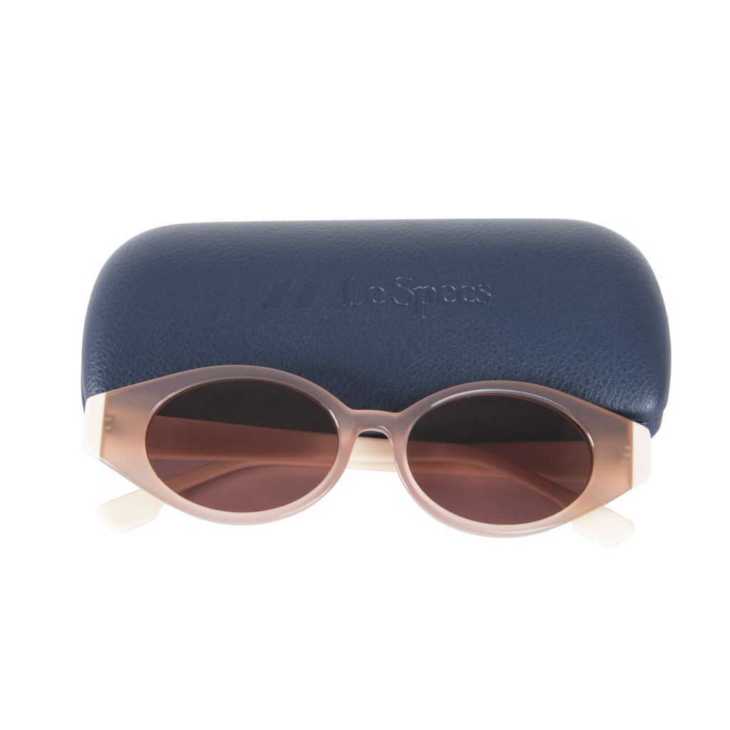 These Le Ovoid sunglasses from Le Specs feature soft curves and narrow proportions that offers a millennial update to the classic oval silhouette. Crafted with contrast acetate end-pieces and temples for a unique and memorable look finished with a smoky brown lens. In excellent condition, comes with case.