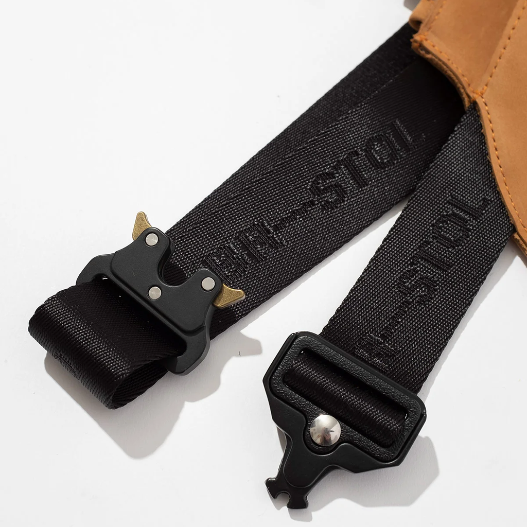 Leather Pocket Bag is inspired by the exposed pocket shape of our Reversible Sweats and features 100% genuine pebble leather, woven jacquard Bristol Studio strap, military grade quick-release buckle, metal slider allows for lengthening or shortening of the strap, debossed Bristol Studio logo, and can be worn over the shoulder or on the waist.