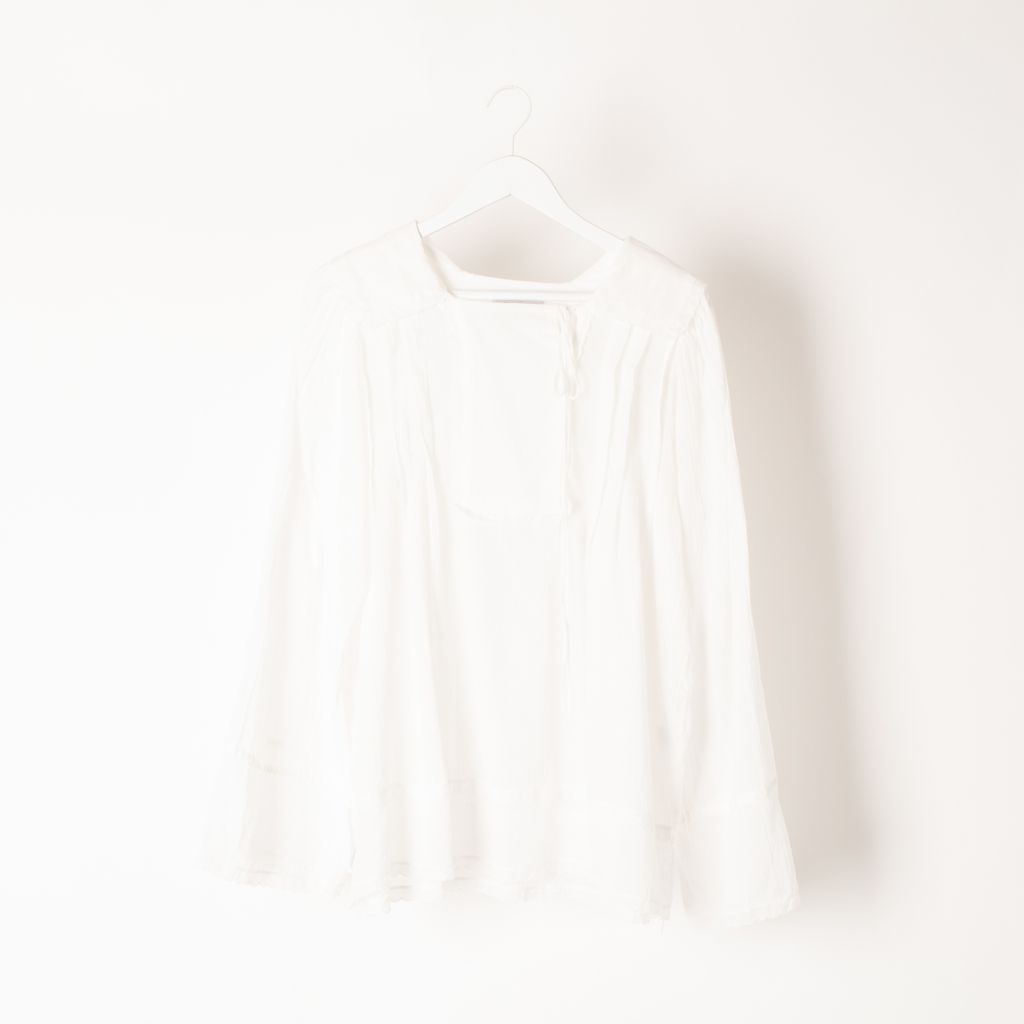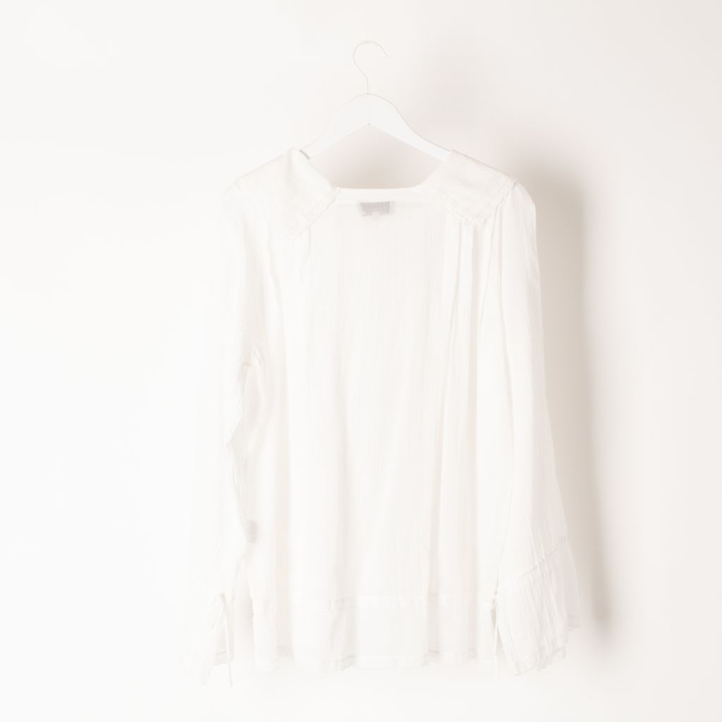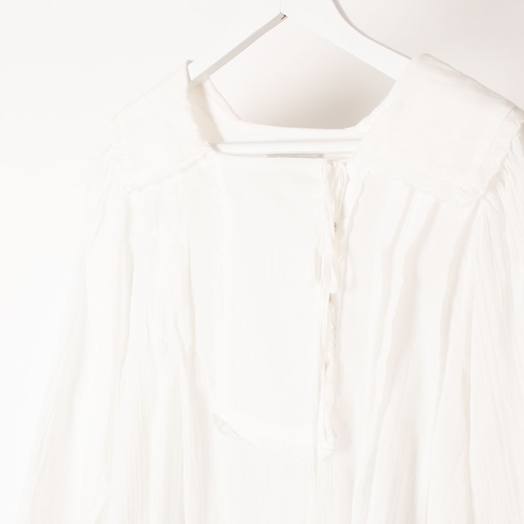 Like new, pleated blouse from Lee Mathews. The blouse is crafted from cotton and the loose-fitting shape suspends from a lightweight crinkle sailor collar, with soft pleated shoulders and scalloped edges. 100% cotton.