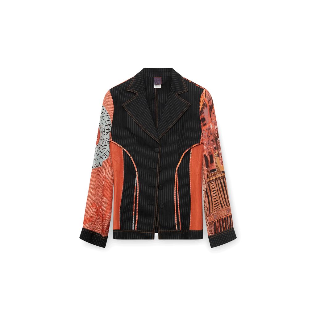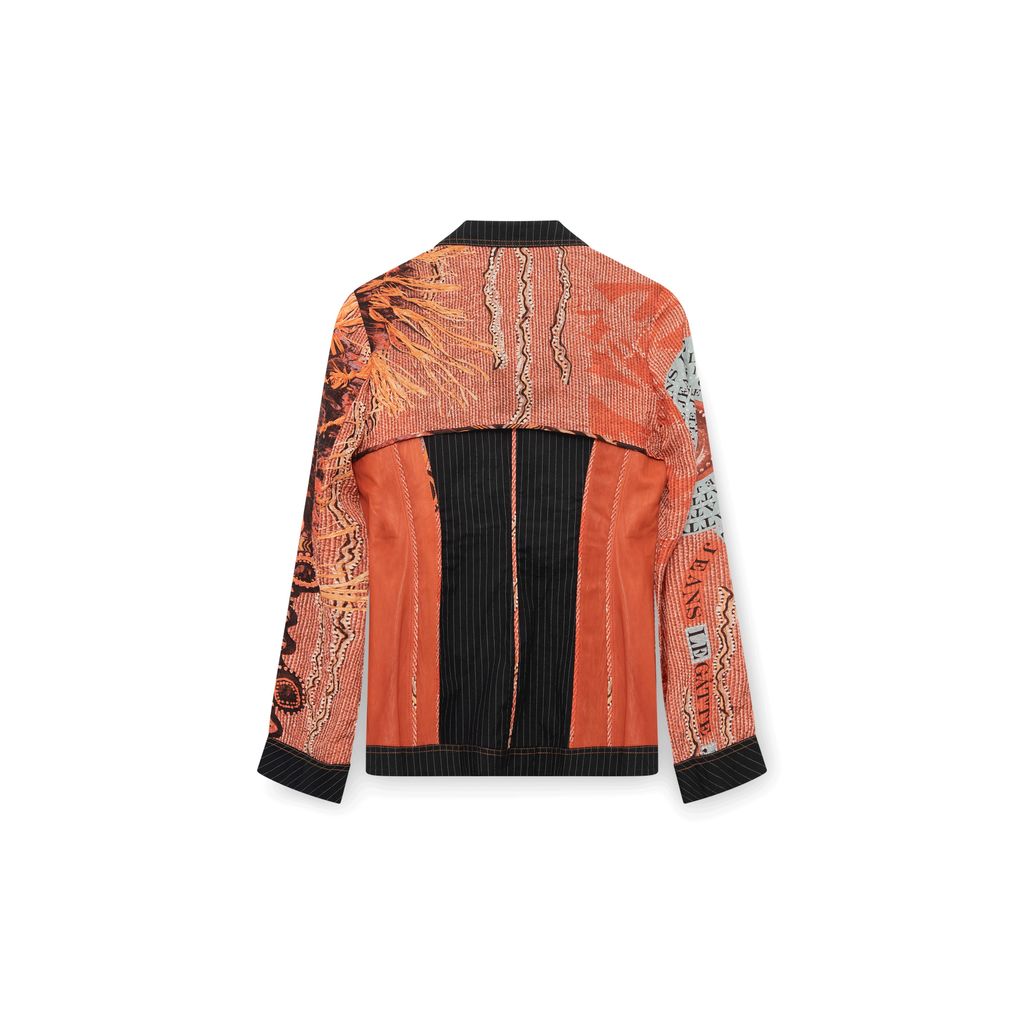 Legatte Jeans Shirt Jacket features button up closure, graphic detailing along sleeves.