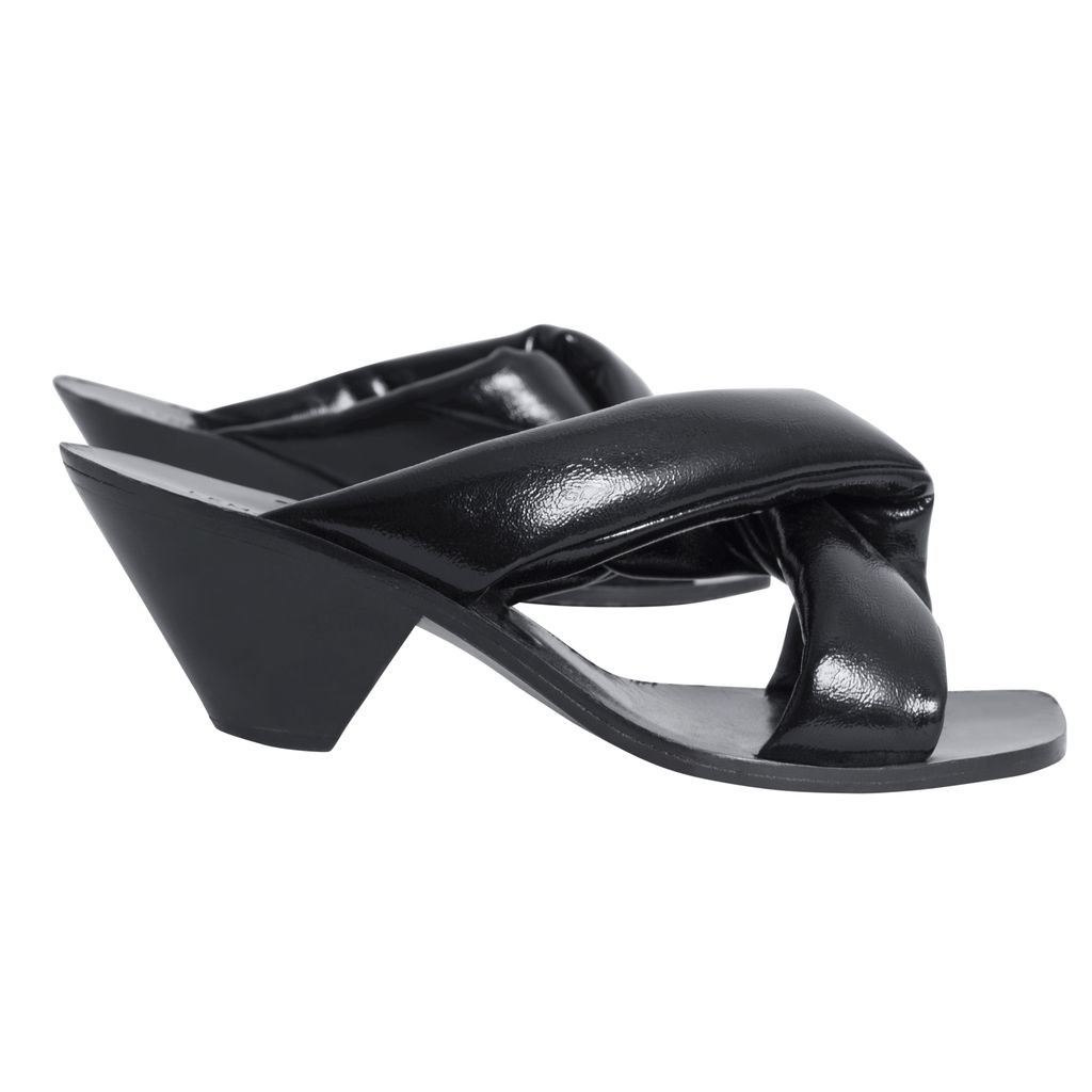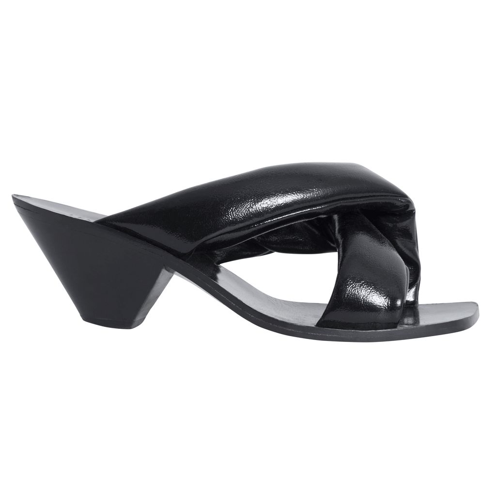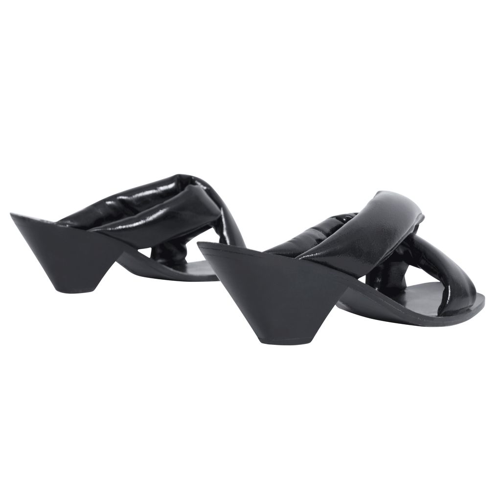 Lemaire Kitten Heels in Black feature glossy cross-over leather straps and block heels, original box and dust bag included.