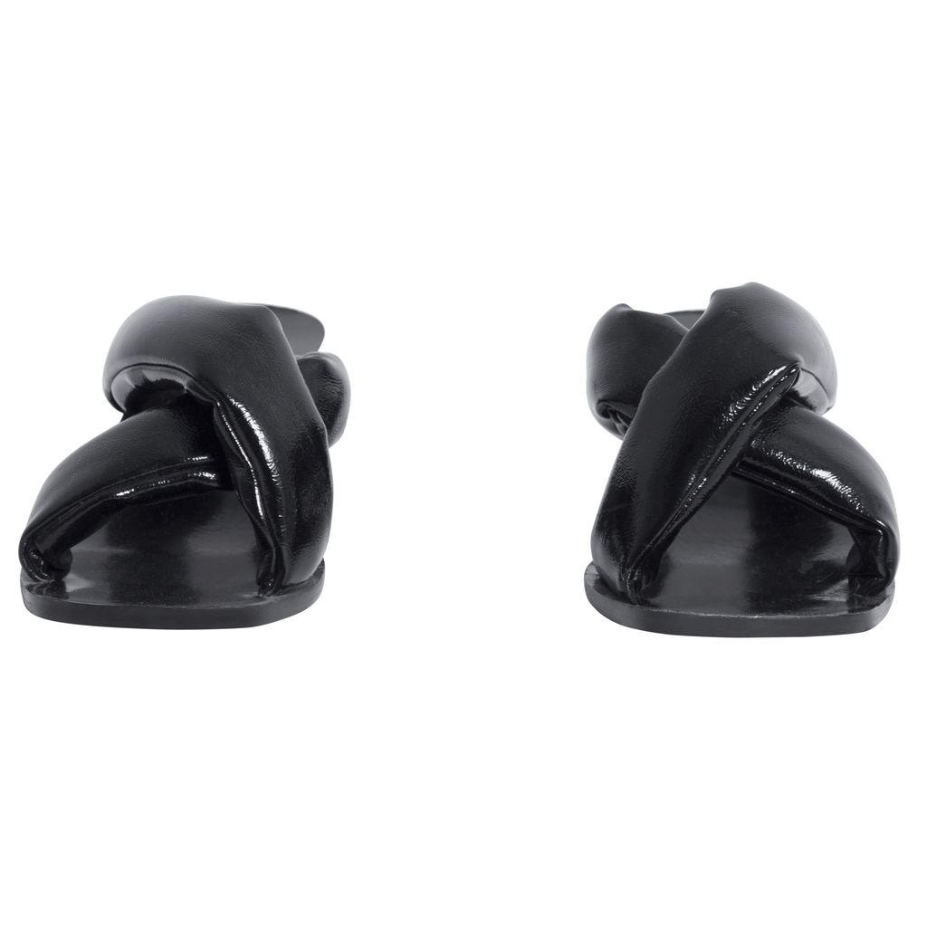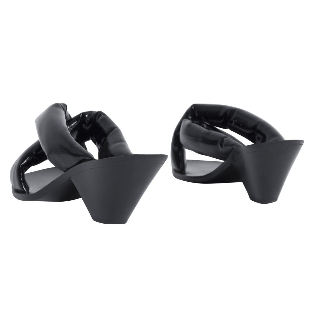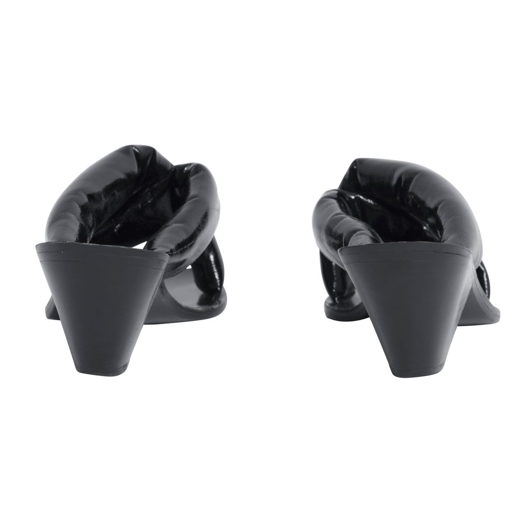 Lemaire Kitten Heels in Black feature glossy cross-over leather straps and block heels, original box and dust bag included.