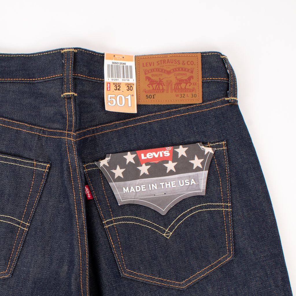 Handcrafted by well loved San Francisco brand Levi's, these jeans have a relaxed fit and stiff fabrication. Features straight leg body, stiff selvedge fabrication, attached tags, and leather back patch at waist.
