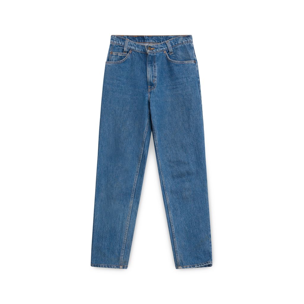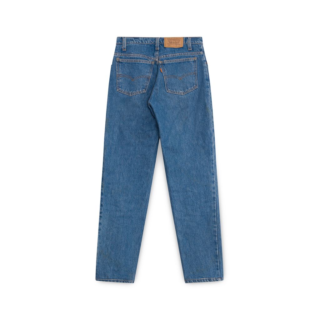 Vintage Levi Medium Wash Jeans features belt loops, 5-pocket. style, zip-fly, logo patch on back waistband.
