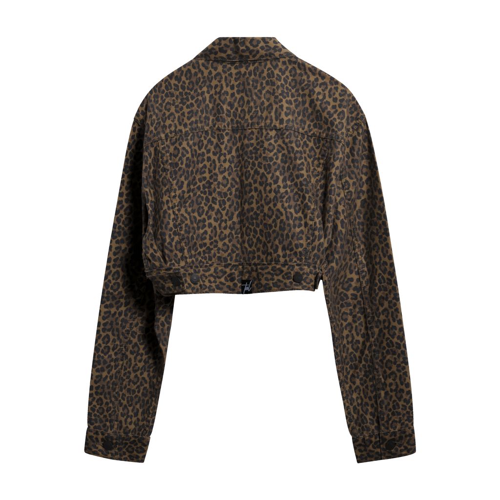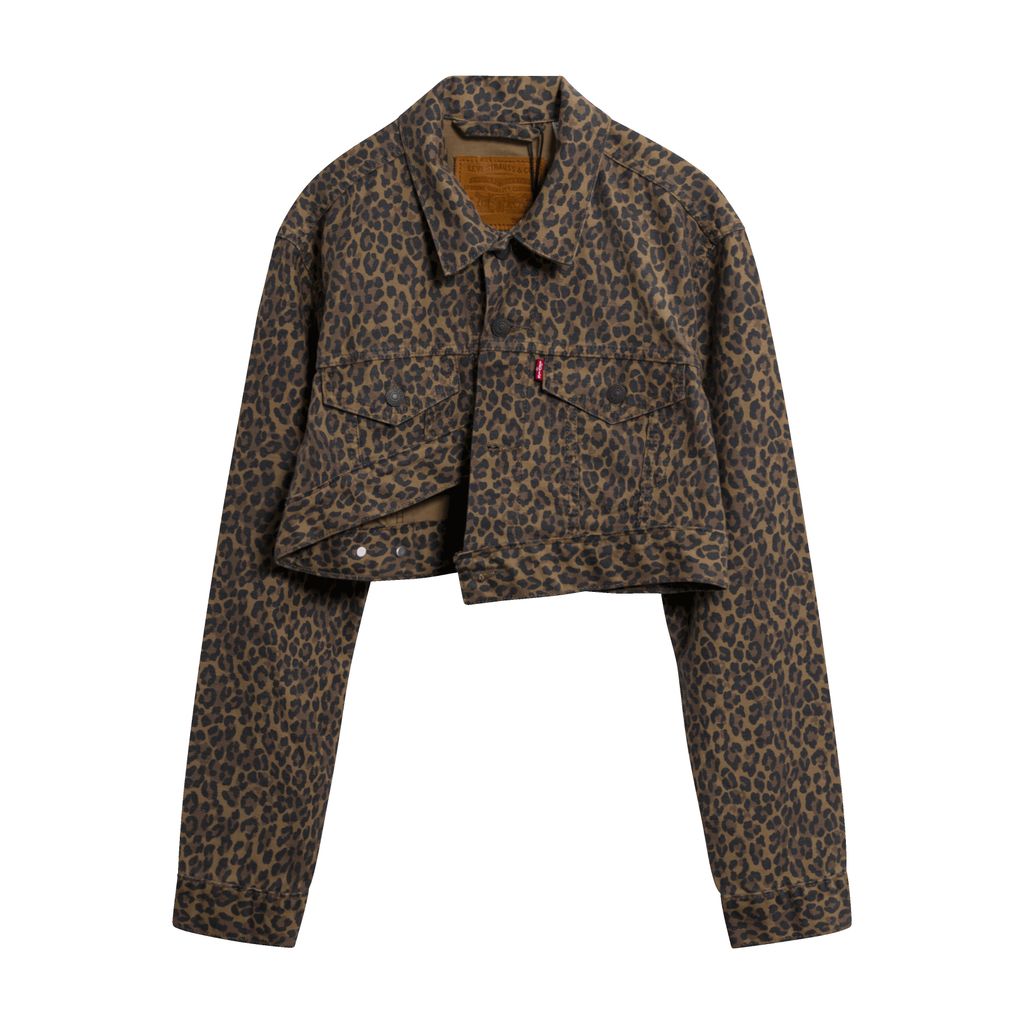 Levi's Premium reworks the classic Levi's jacket shape into an asymmetrically cropped option. This jacket features a classic front pocket with the iconic red Levi's tab as well as a playful all-over leopard pattern.