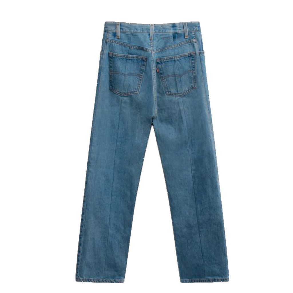 Cut for a relaxed fit, these non-stretch cotton jeans from limited edition Levi's x Off-White collection feature a high rise, five-pocket style, and exposed zip seam. In good condition.