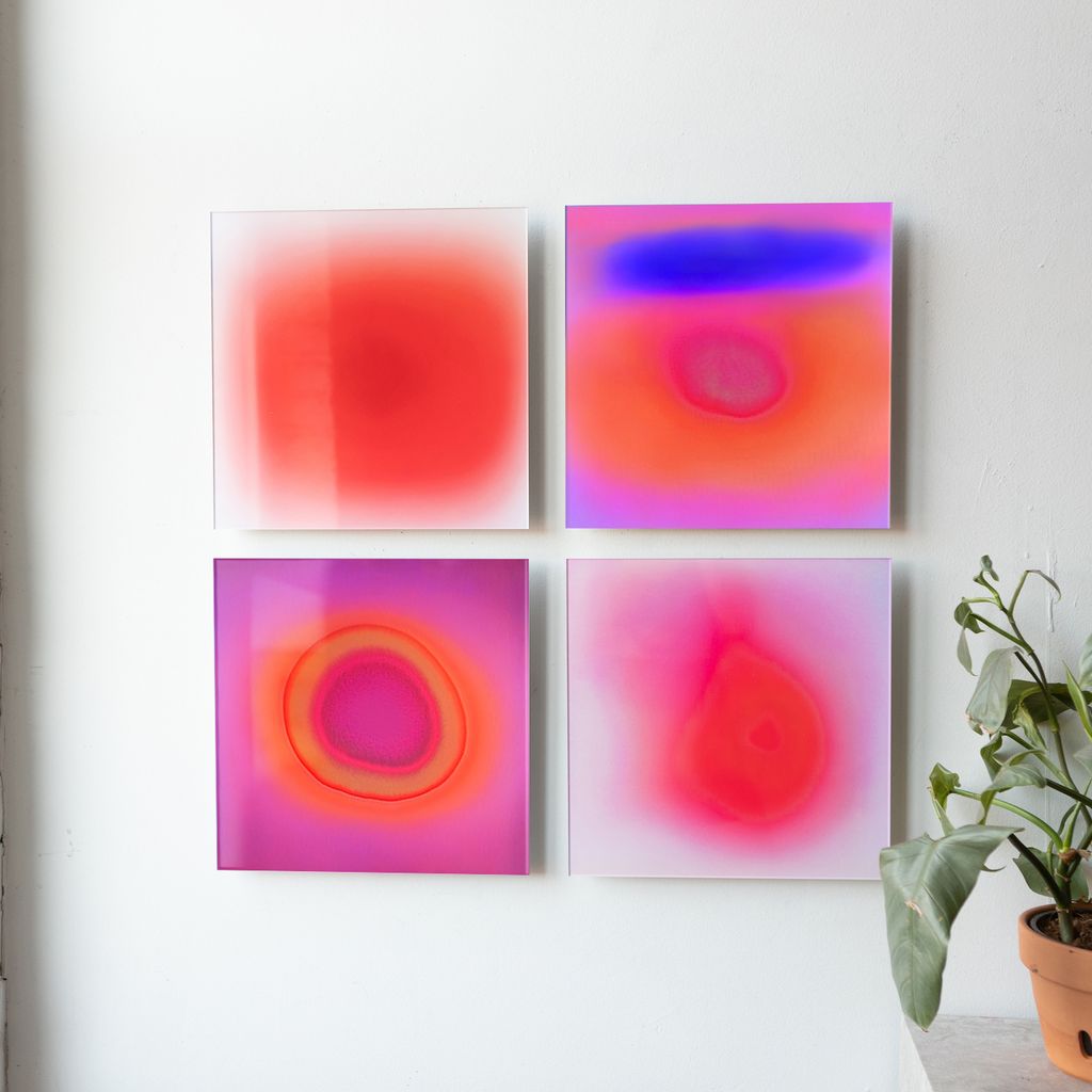 12x12" gallery quality acrylic paint, edition of 10. Aluminum mounting hardware included. Each print is made-to-order and will ship 1-2 weeks of order date. These modular sets can be mixed, matched and rearranged to suit your space.