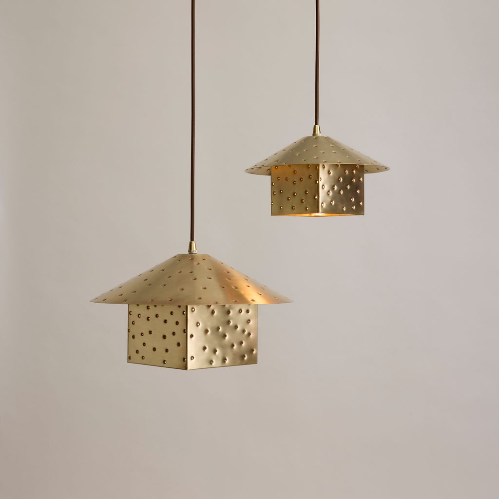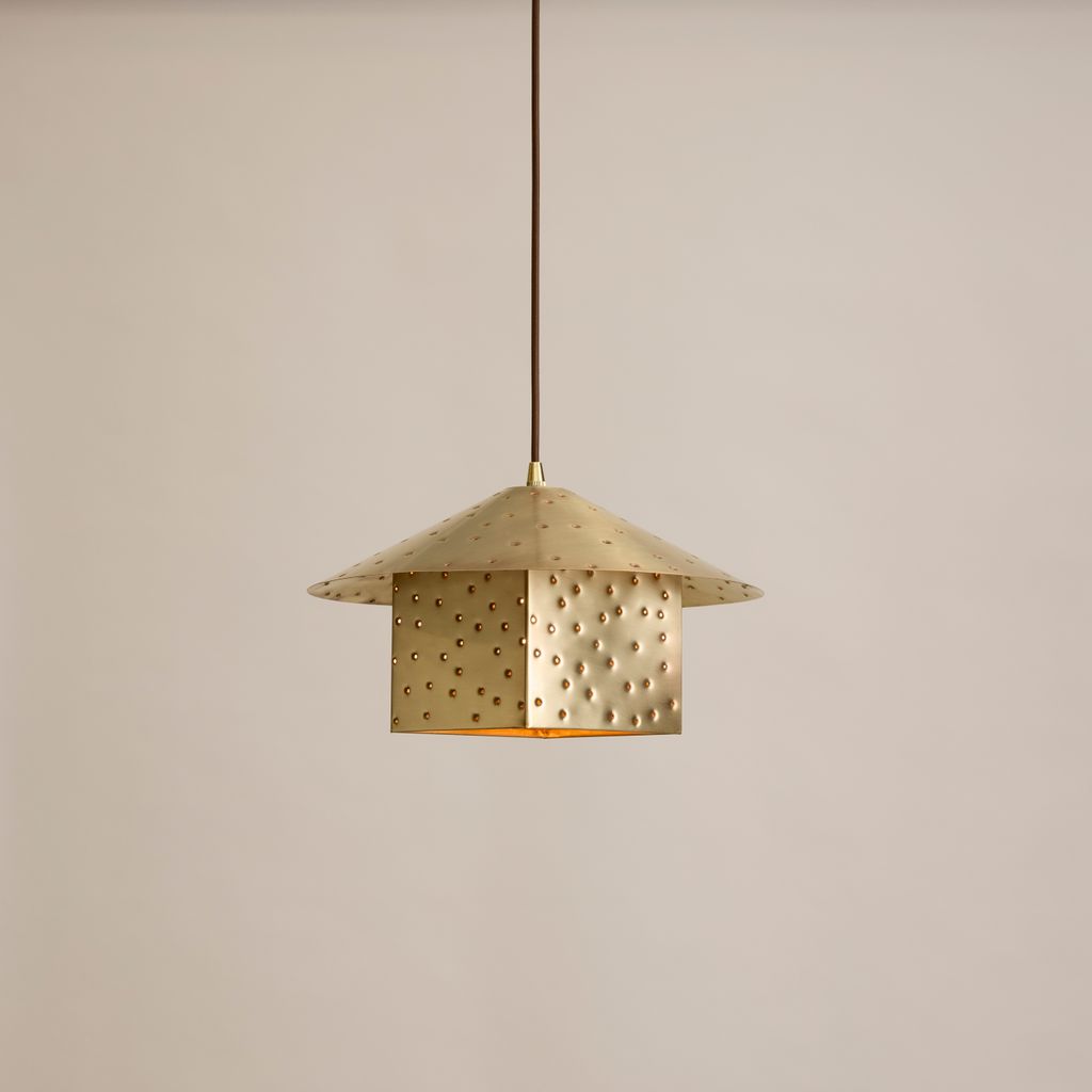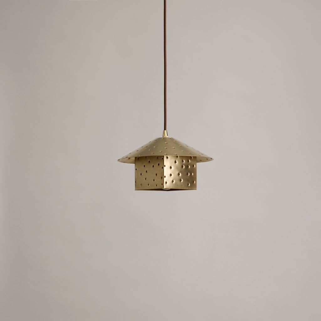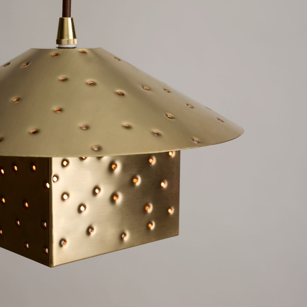 Each Lin Pendant is hand-punched by an independent lighting shop in Austin, TX that has been crafting metal lighting for over 30 years.