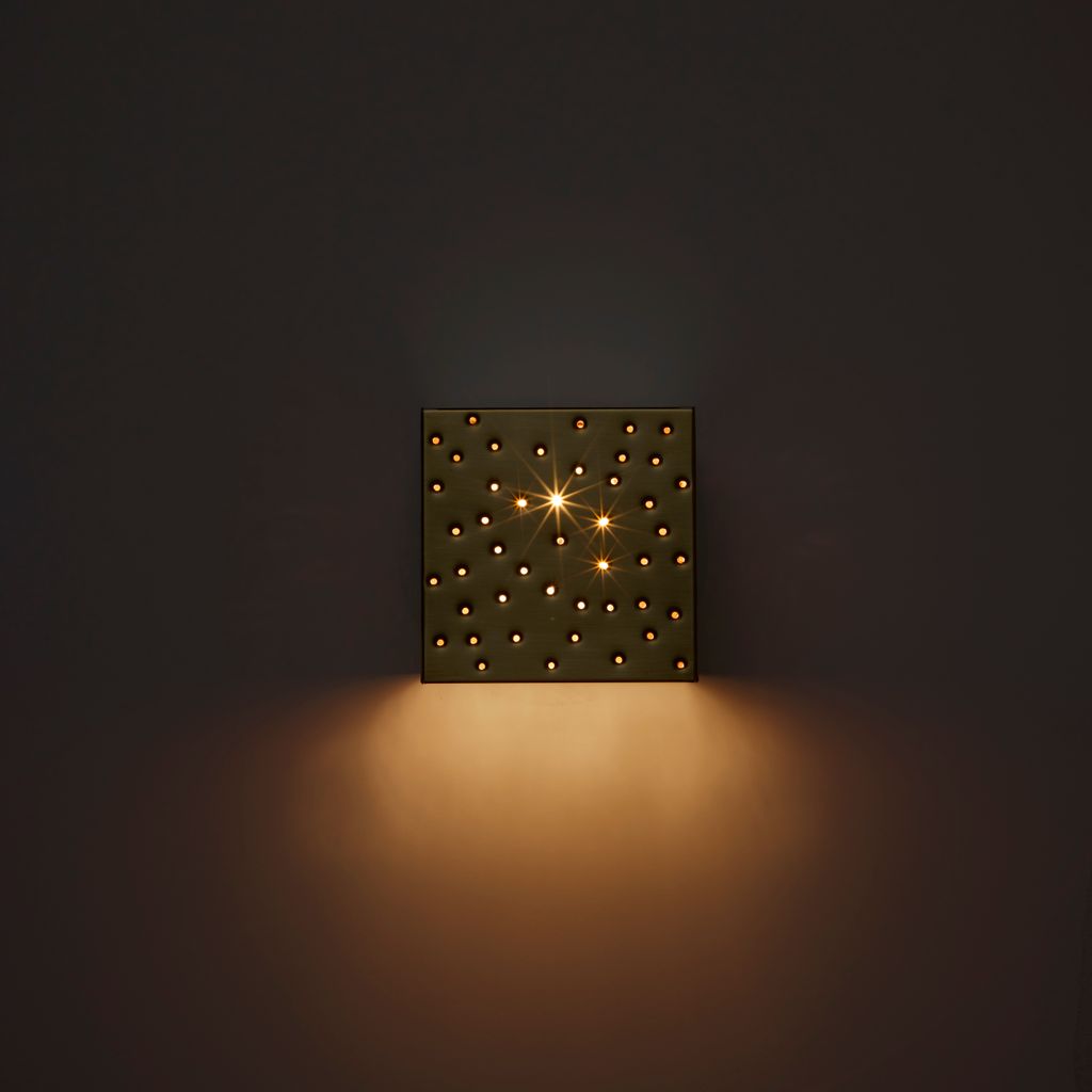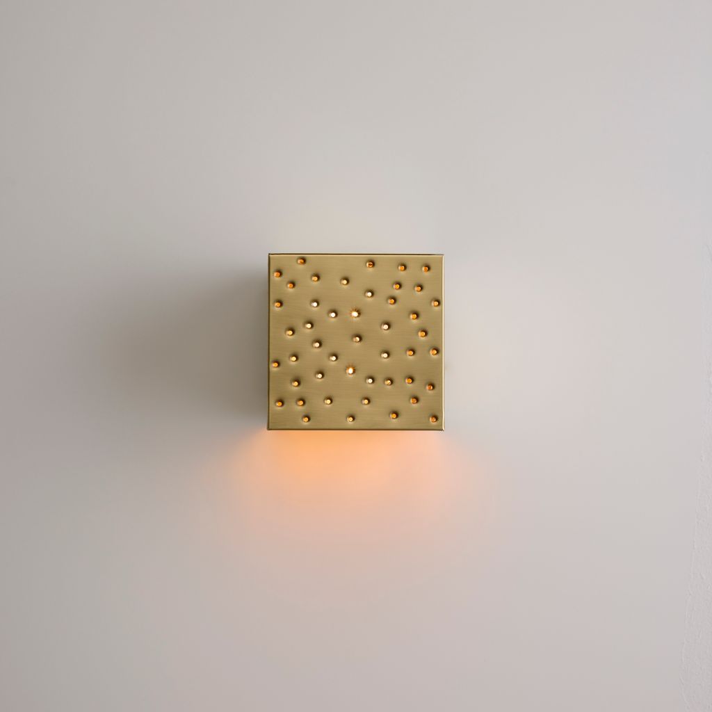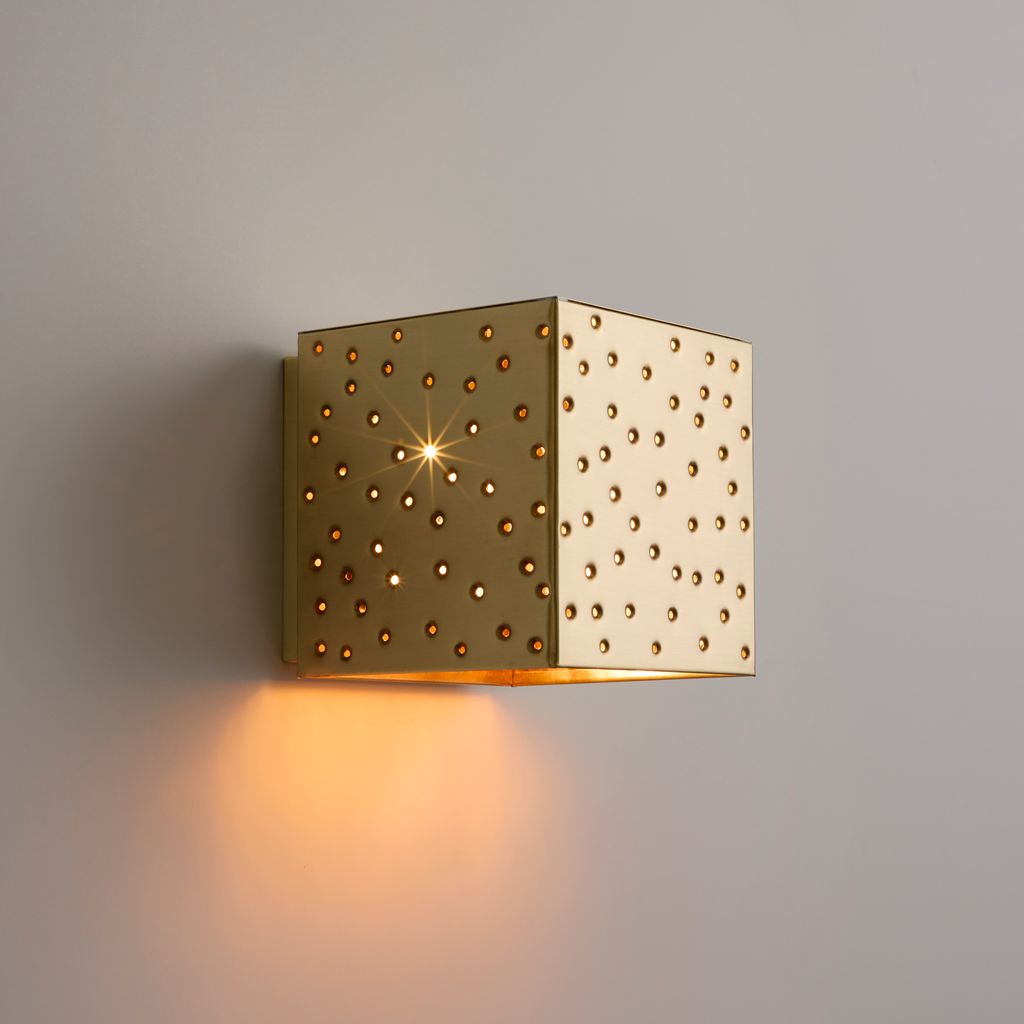 Each Lin Sconce is hand-punched by an independent lighting shop in Austin, TX that has been crafting metal lighting for over 30 years.