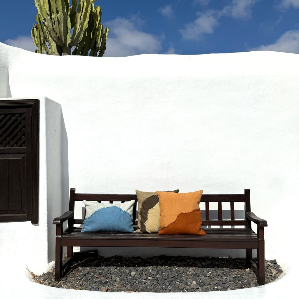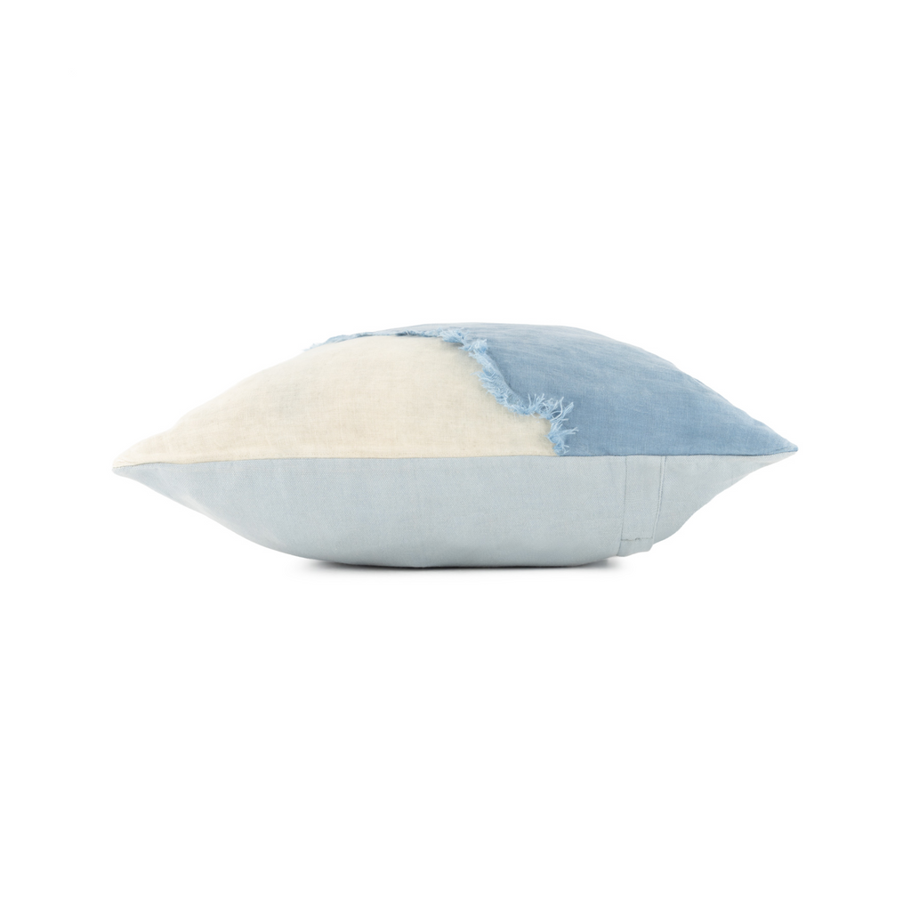 Crafted from natural fibers and botanically dyed, this patchwork pillow cover pairs breathable linen with sturdy cotton duck.