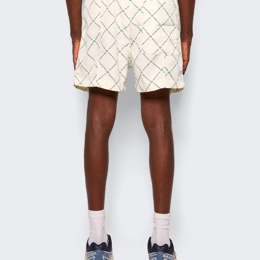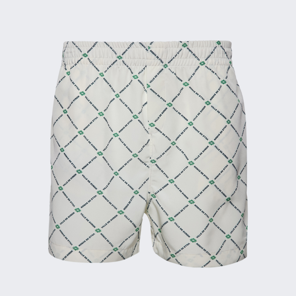 Men’s monogram print shorts with elastic waist and draw cord